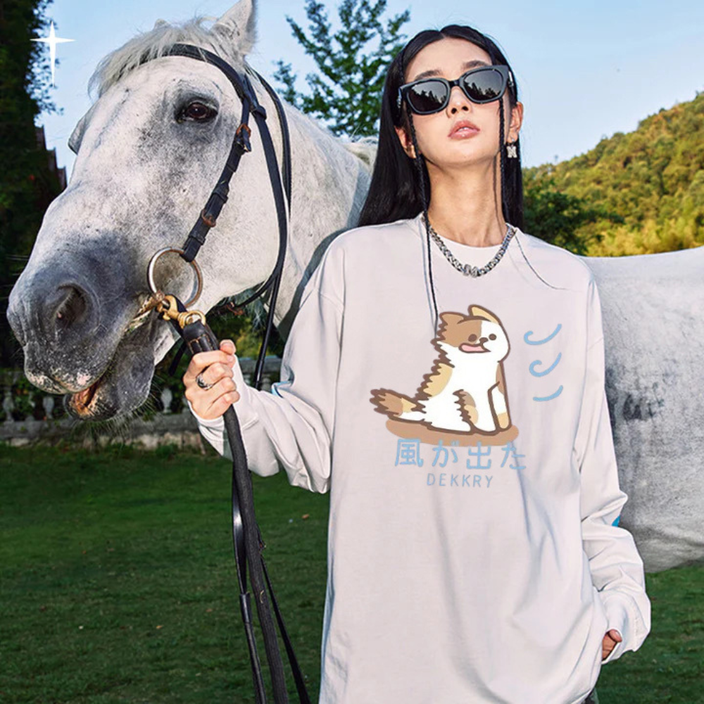 The Japanese Niche Dog Hair Dryer Design Print Sweatshirt features a one-of-a-kind design that showcases a cute and quirky illustration of a dog being dried with a hair dryer. The vibrant colors and intricate details of the design make this sweatshirt stand out from the rest.