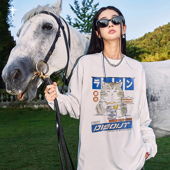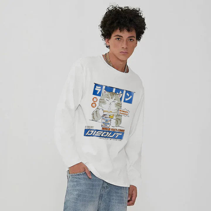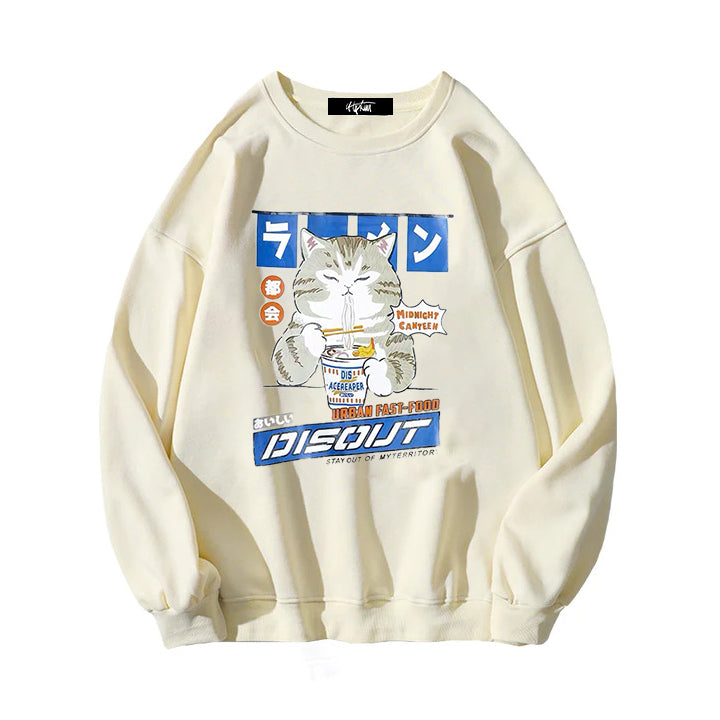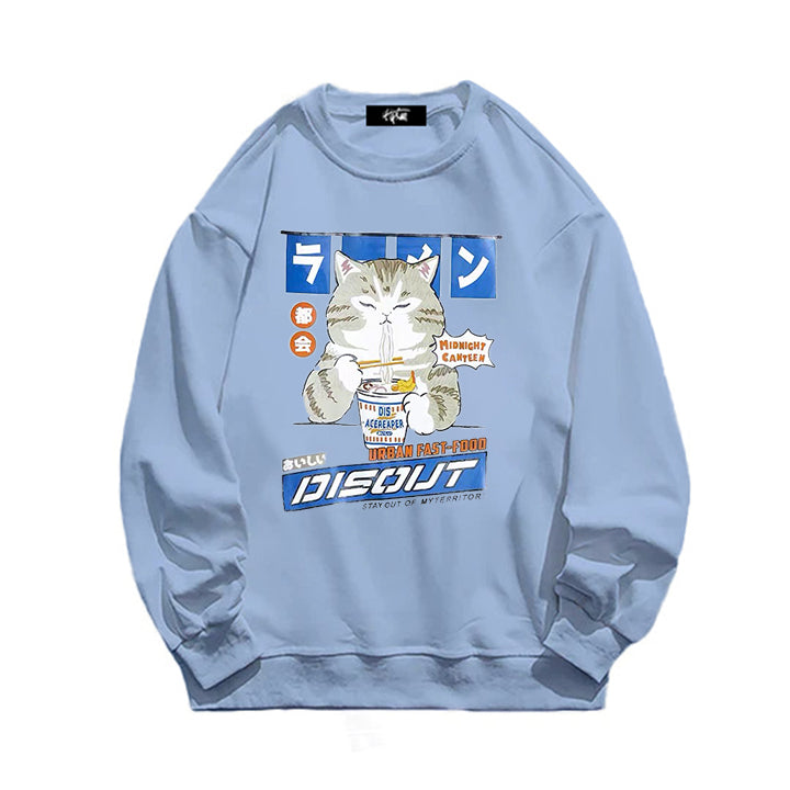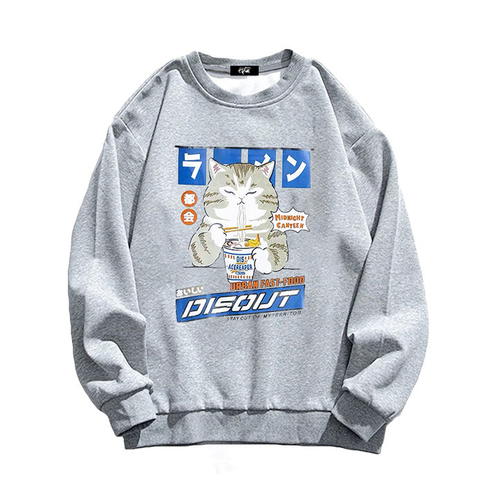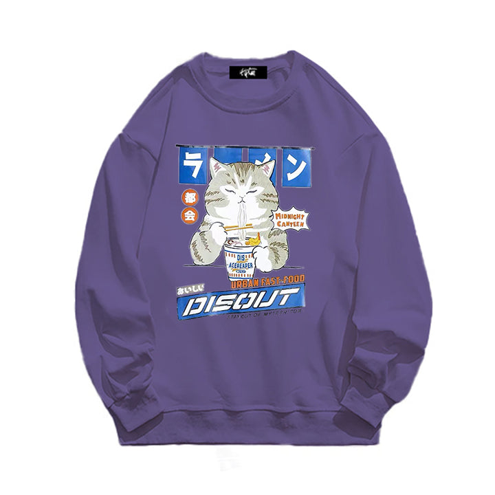 With its vibrant colors and detailed design, this Japanese Style Cat Eating Ramen Print Sweatshirt is sure to turn heads and make a statement. Whether you're lounging at home or out and about, this sweatshirt will keep you warm and stylish all day long.