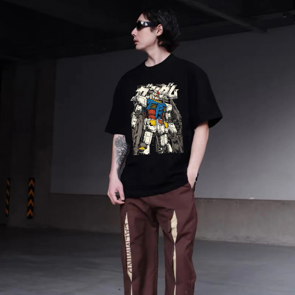 This one-of-a-kind piece features a trendy Japanese letter design, combined with a cool mecha niche print.Made from high-quality materials, this T-shirt is not only fashionable but also comfortable to wear.