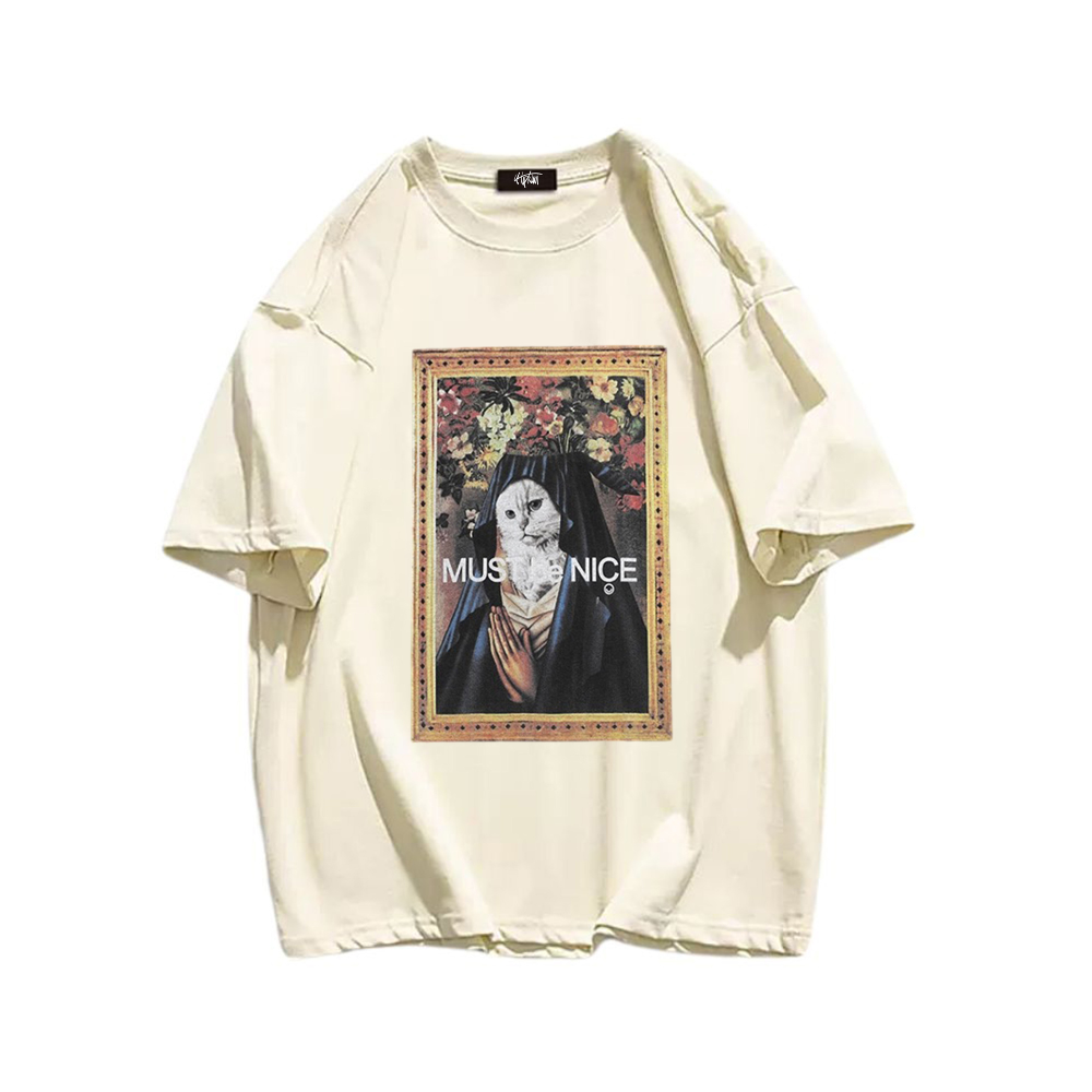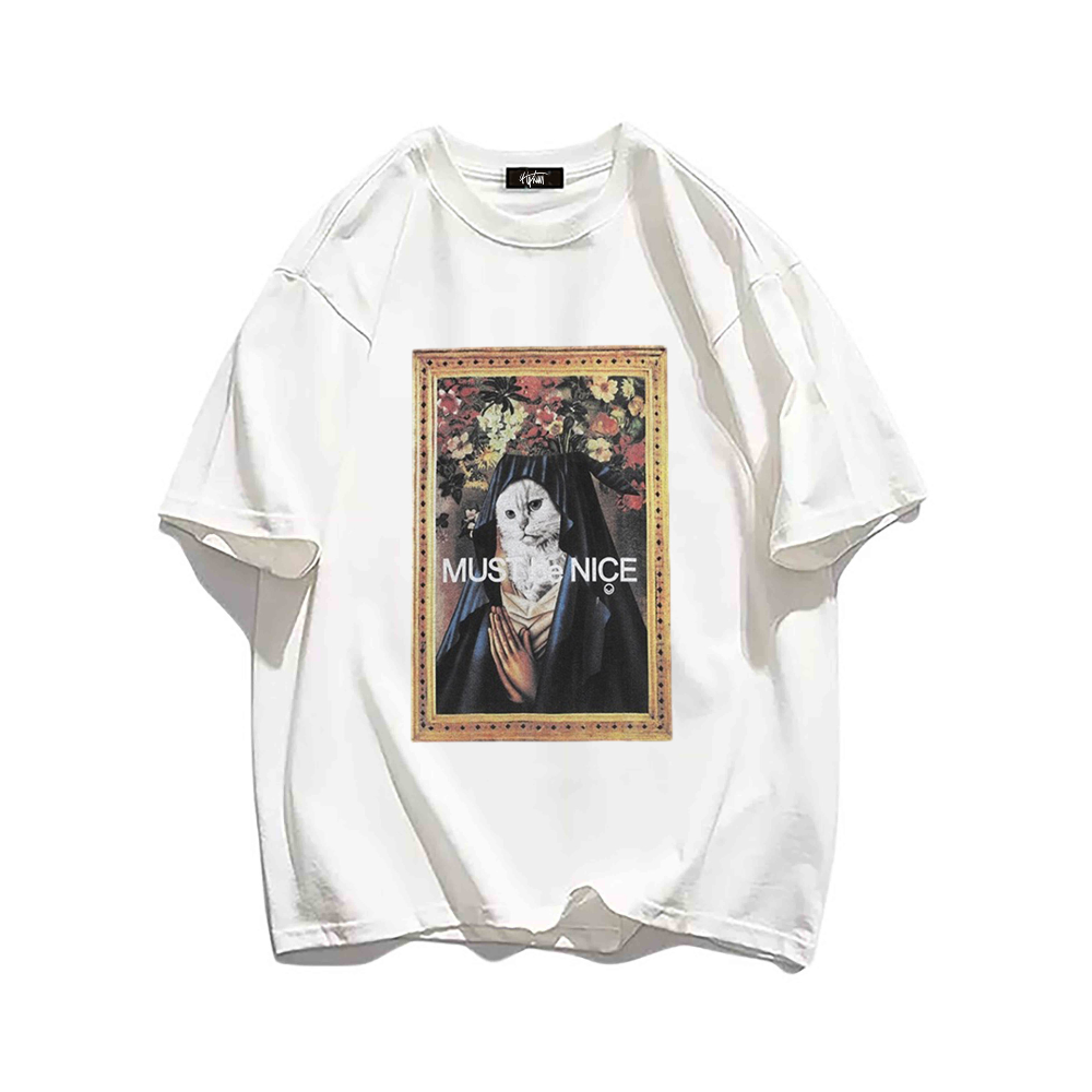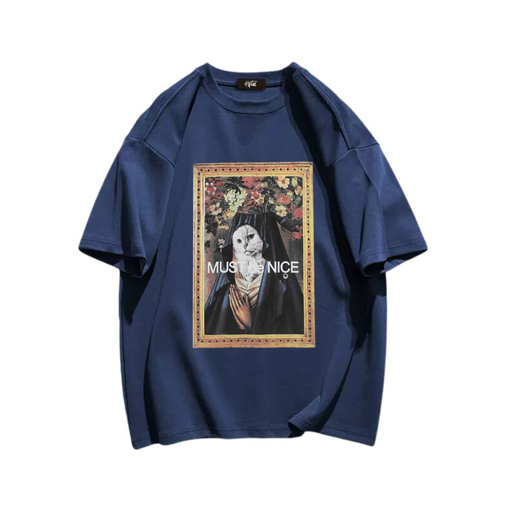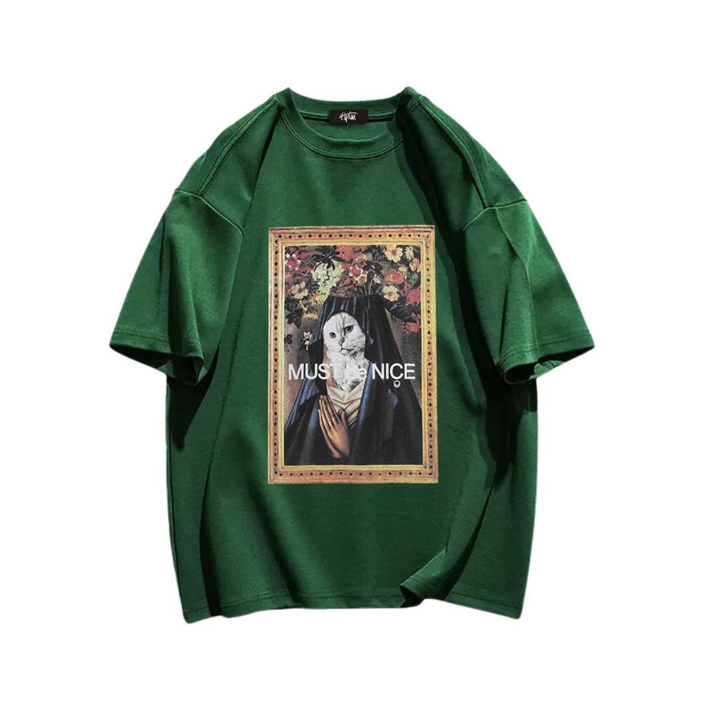 Available exclusively at Hip Kiwi, this T-shirt is a must-have for any cat lover or fashion enthusiast. The high-quality print and vibrant colors make it a standout piece in any wardrobe. Whether you're lounging at home or out and about, this T-shirt will add a touch of whimsy and charm to your look.