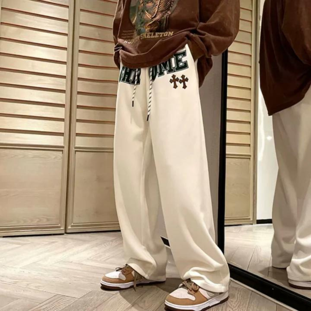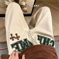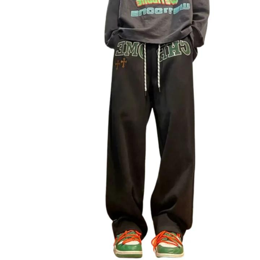 The standout feature of these sweatpants is the embroidered letter detailing on the side, adding a unique and trendy touch to the classic sweatpant style. The elastic waistband and drawstring ensure a secure and adjustable fit, making these sweatpants suitable for all body types.
