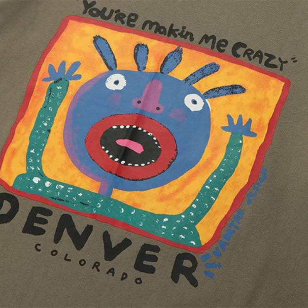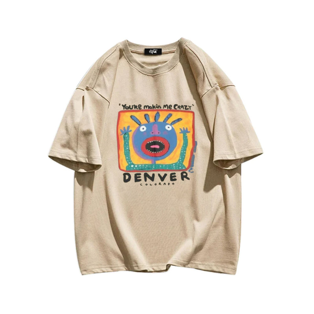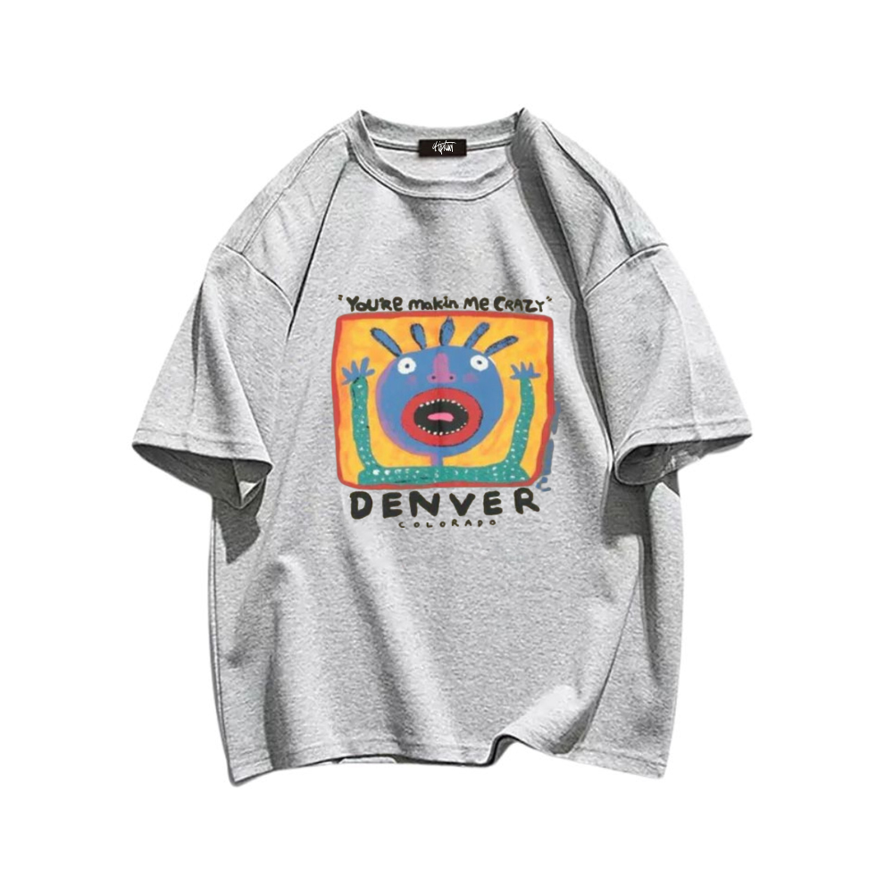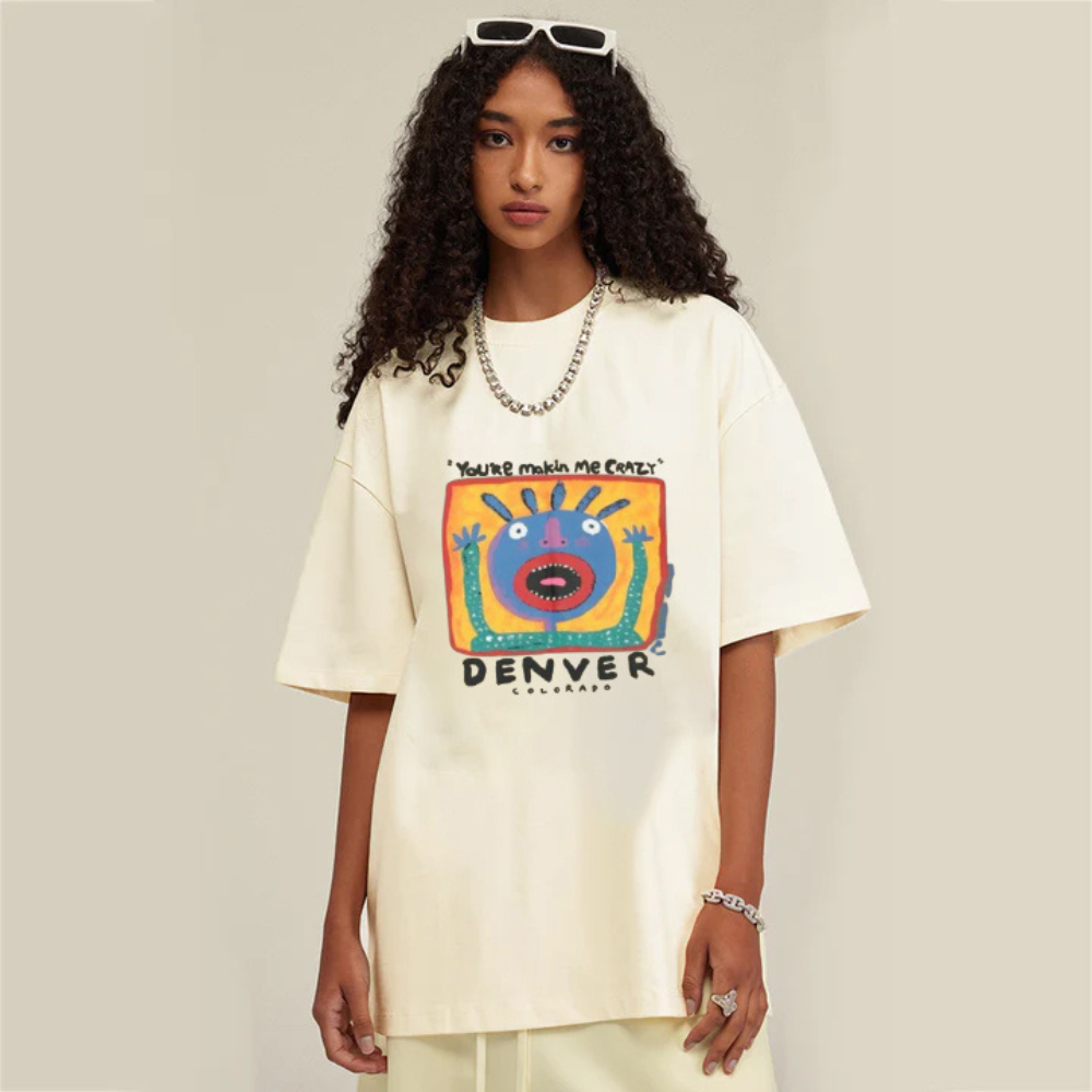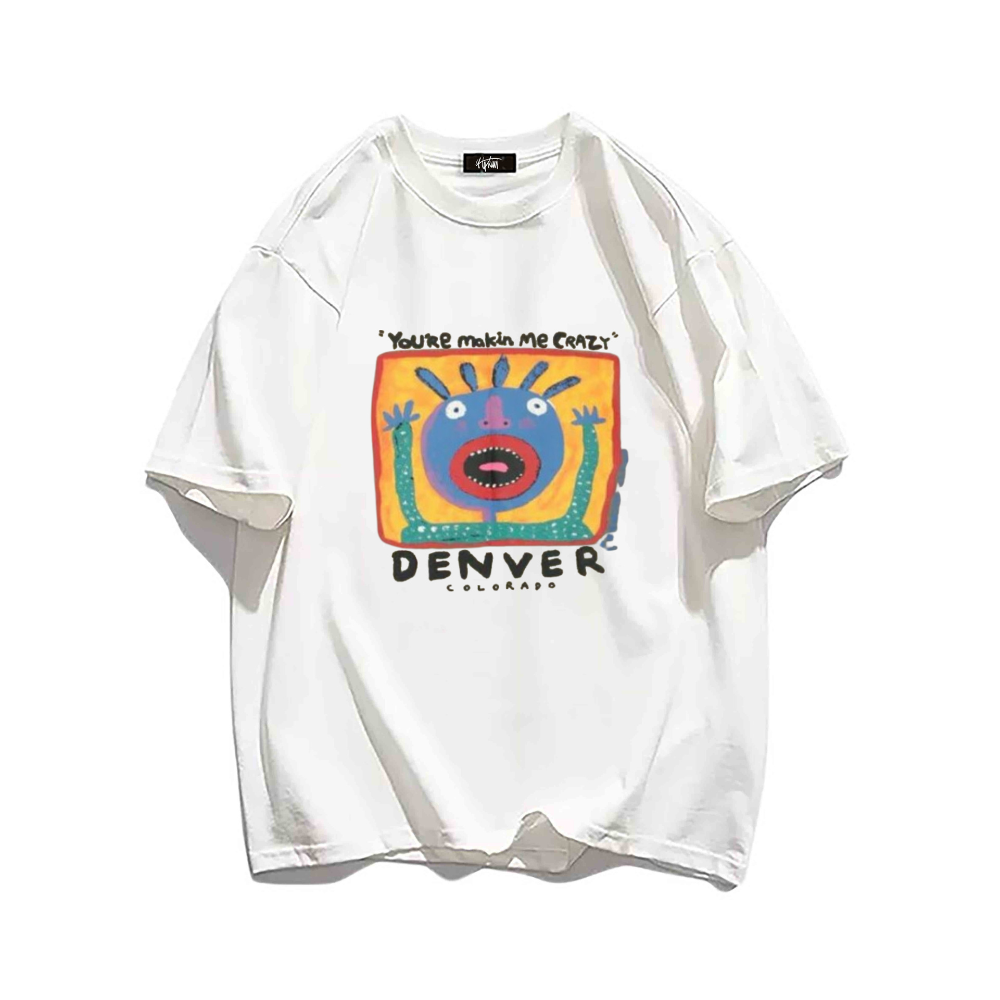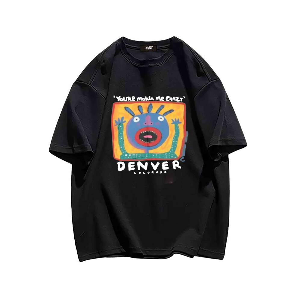 The front of the shirt features the phrase "Makin Me Crazy" in bold, black lettering, while the back showcases a colorful and intricate design that is sure to catch the attention of those around you. The vibrant colors and unique design make this T-shirt stand out from the crowd and add a touch of personality to any outfit.