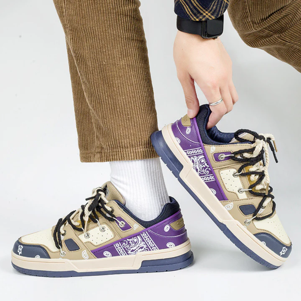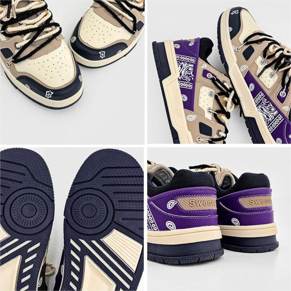Enhance your wardrobe with the Hipkiwi Vintage Street Color Blocking Casual Sneakers. These shoes blend sophistication and style, with a unique twist from the contrasting rolled wheat ear pattern. Crafted for luxury, the attractive and fashionable sneaker will leave you making a statement.
