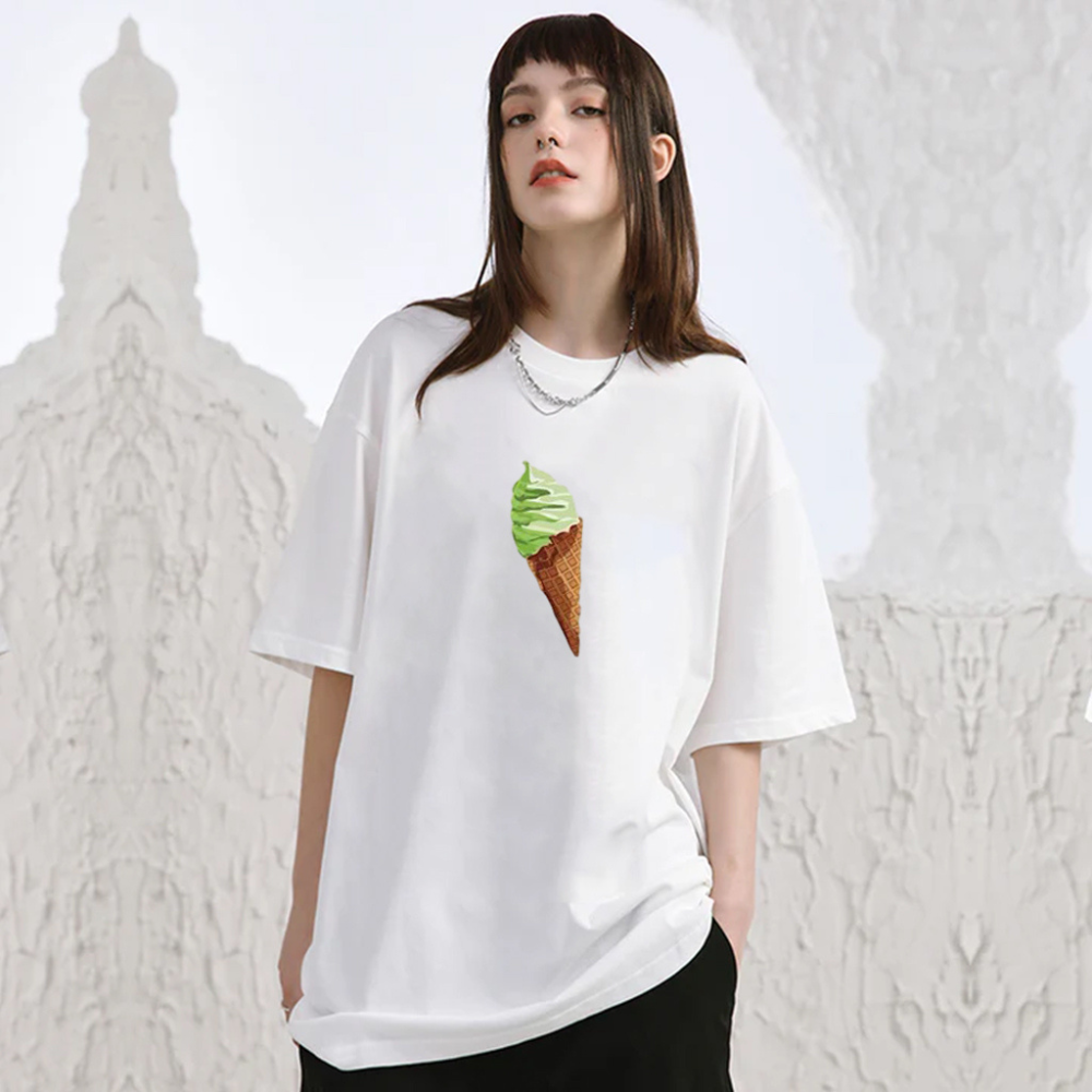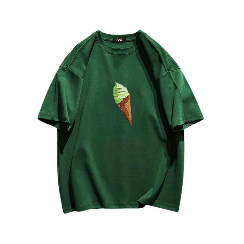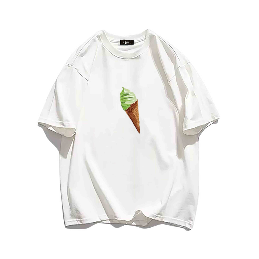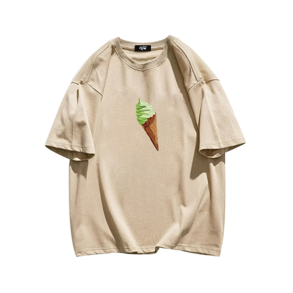 But this t-shirt is not just a fashion statement, it's also multi-purpose. Whether you're a matcha lover or simply appreciate a good scoop of ice cream, this t-shirt is a must-have. Wear it to your next workout session, a casual day out, or even as a pajama top for a cozy night in.