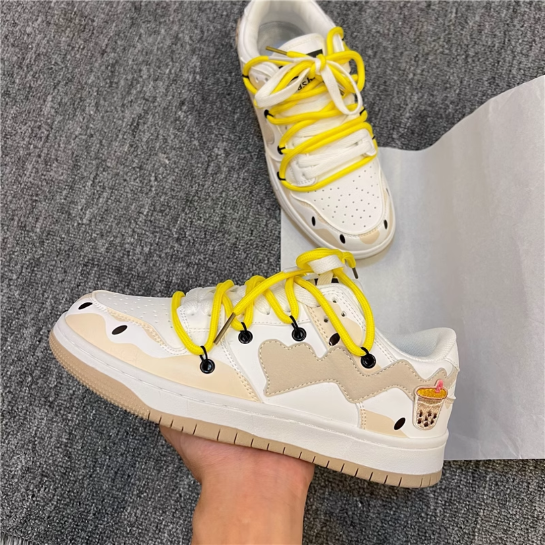 Enhance your wardrobe with the Hipkiwi Milk Tea Element Sneakers. These shoes blend sophistication and style, with a unique twist from the contrasting rolled wheat ear pattern. Crafted for luxury, the attractive and fashionable sneaker will leave you making a statement.