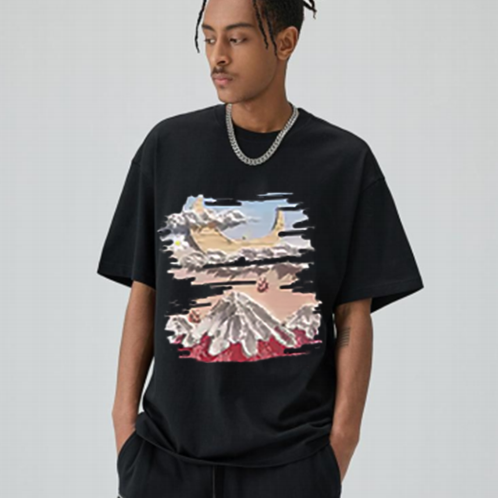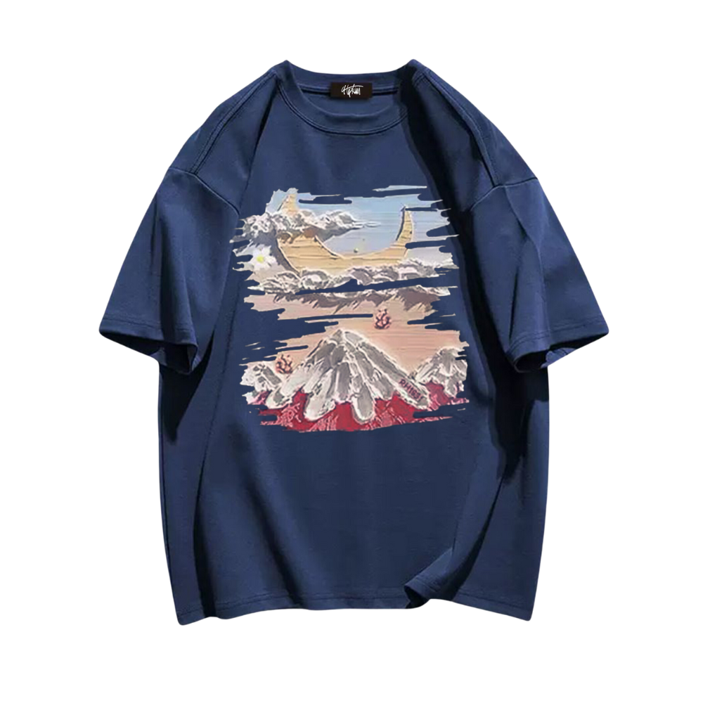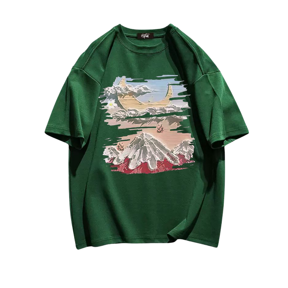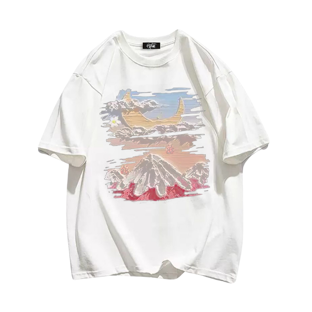 Crafted from high-quality materials, this T-shirt is not only stylish but also comfortable to wear. The intricate design features a majestic mountain range with a stunning full moon in the background, creating a mesmerizing visual that will surely turn heads.