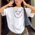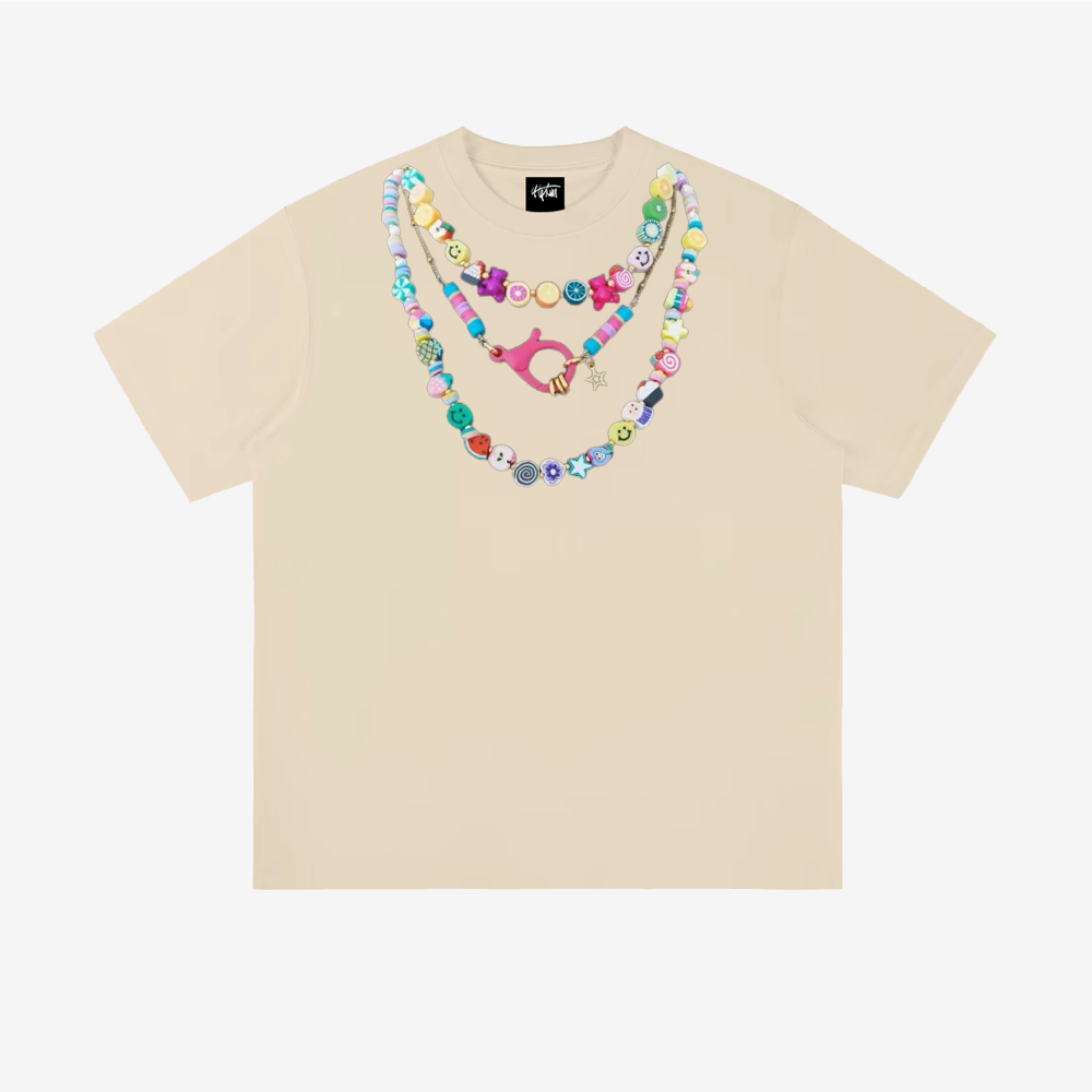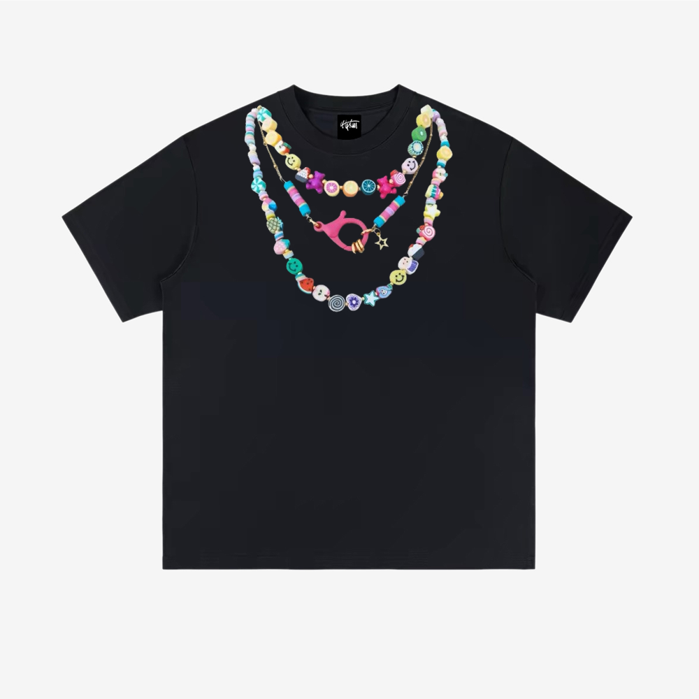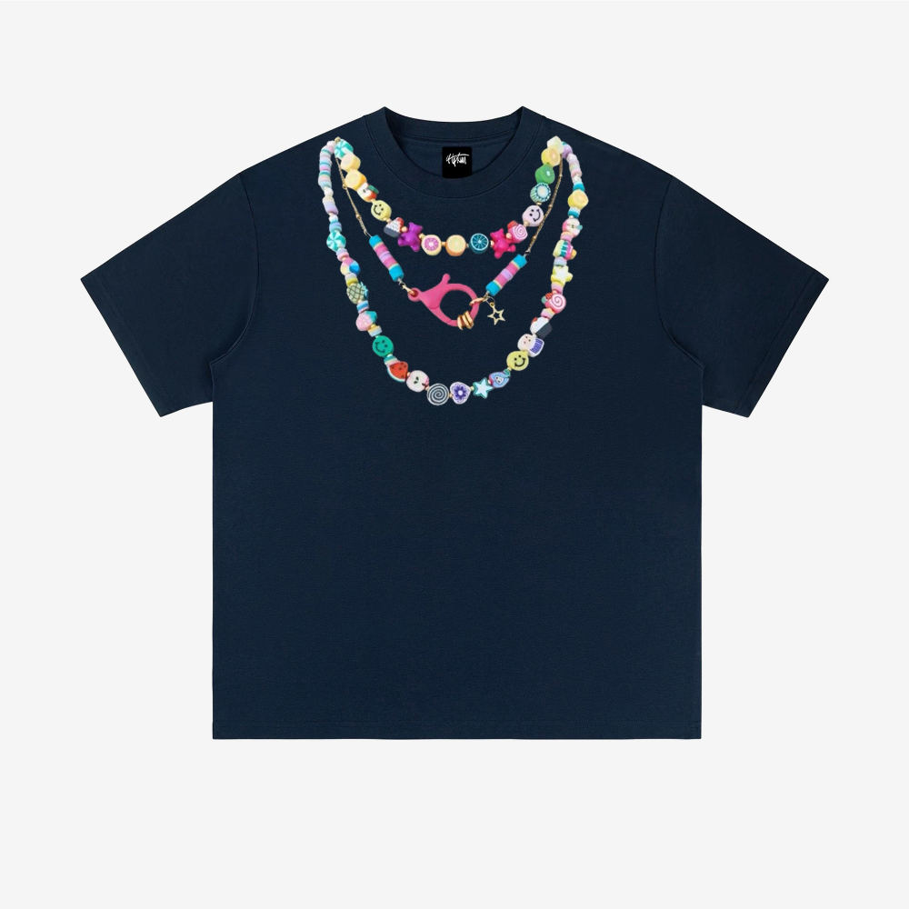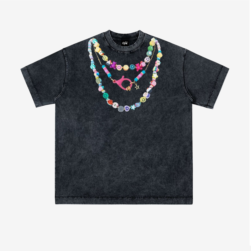 This t-shirt apart is the unique urban style of the niche design dopamine necklace print. This trendy print is sure to make a statement and add a touch of edginess to your wardrobe. Whether you're heading out for a casual day with friends or a night out on the town, this t-shirt is the perfect choice for any occasion.