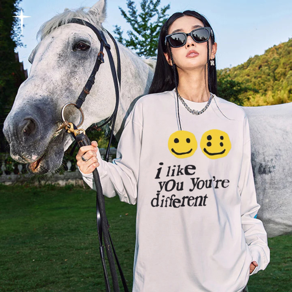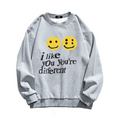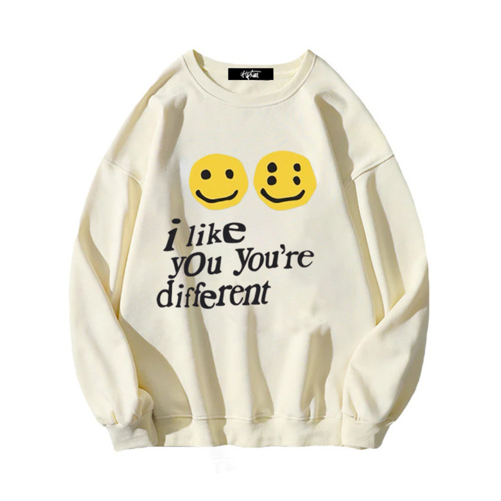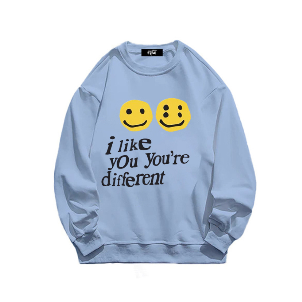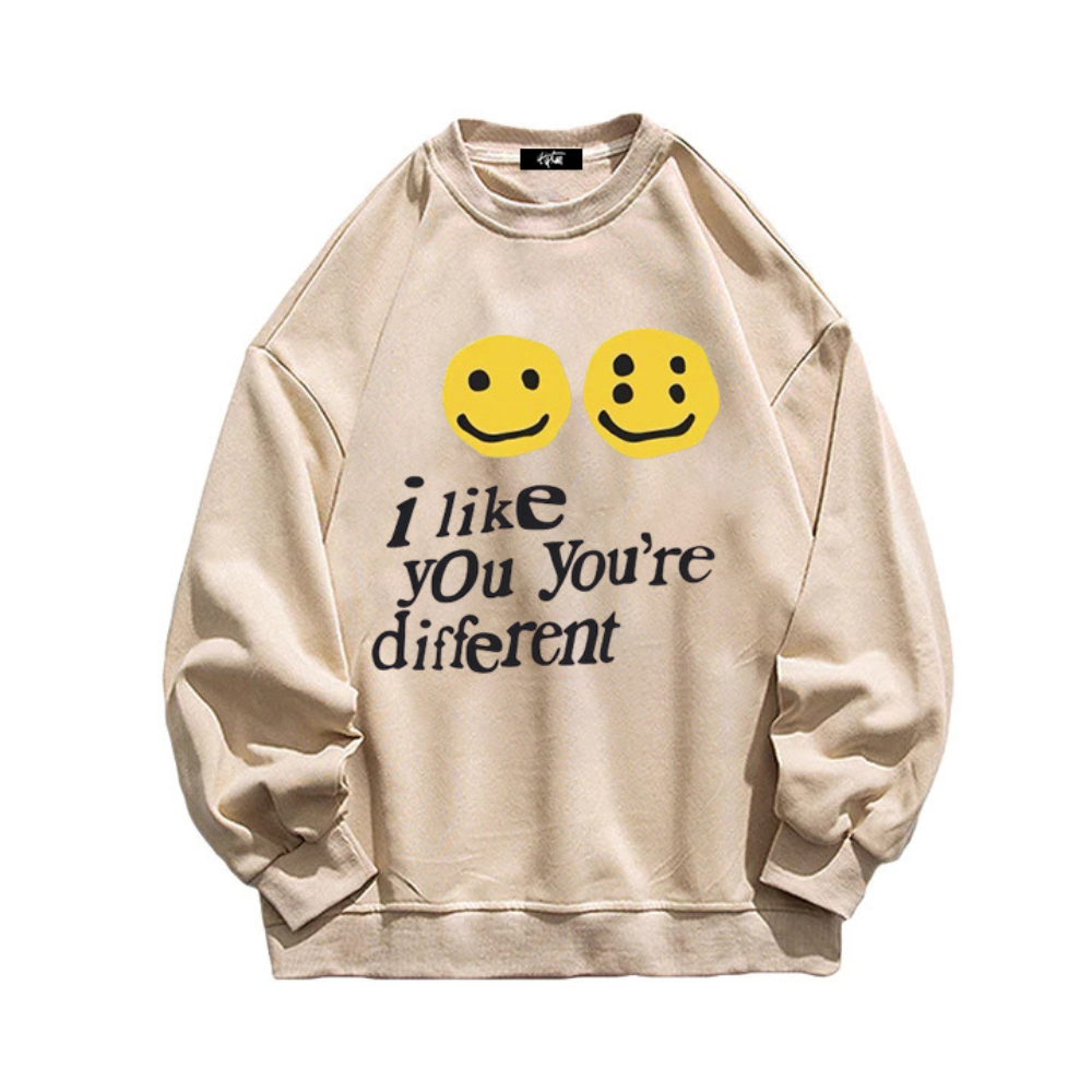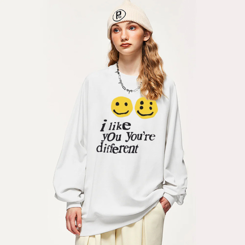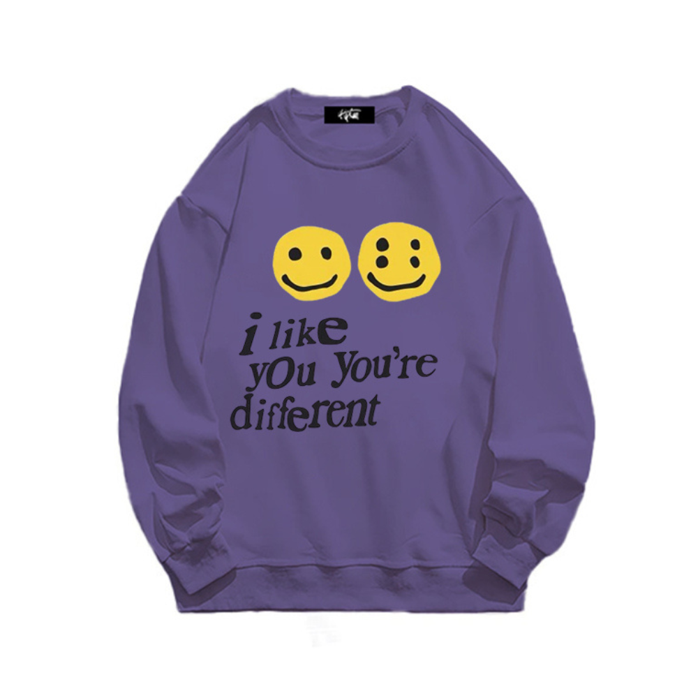 The standout feature of this sweatshirt is the unique smiley letter print design, adding a fun and playful touch to your outfit. The print is bold and eye-catching, making it a statement piece that will elevate any look. The sweatshirt is available in a range of sizes, so you can find the perfect fit for you.