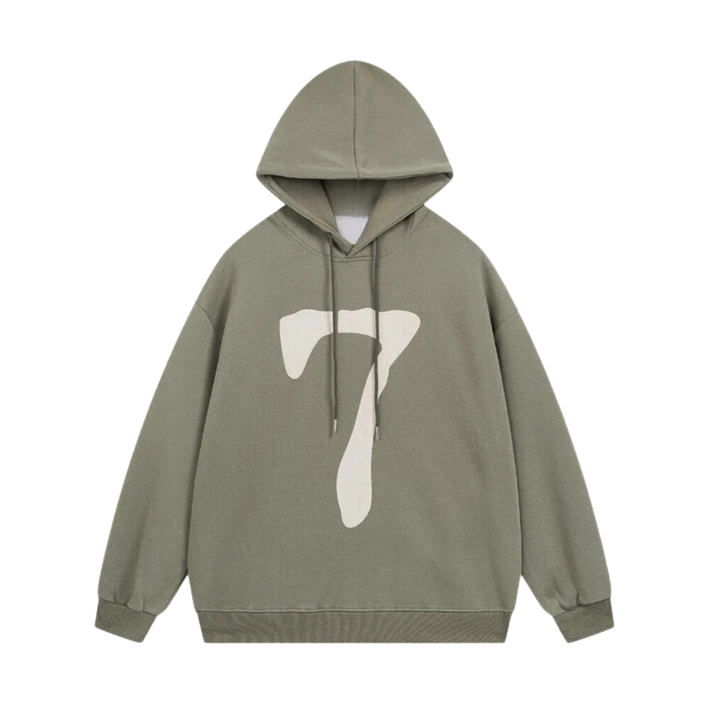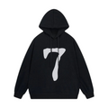 The standout feature of this hoodie is the bold number 7 print on the front, adding a unique and eye-catching element to your outfit. The print is expertly crafted and adds a touch of edginess to the overall design.