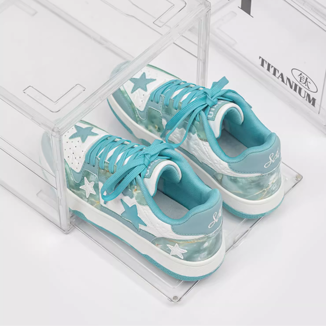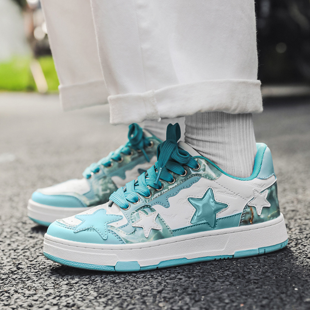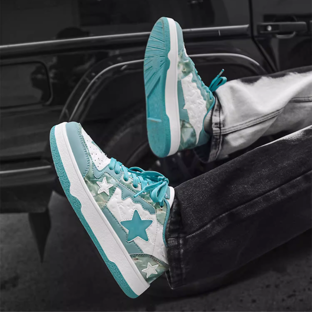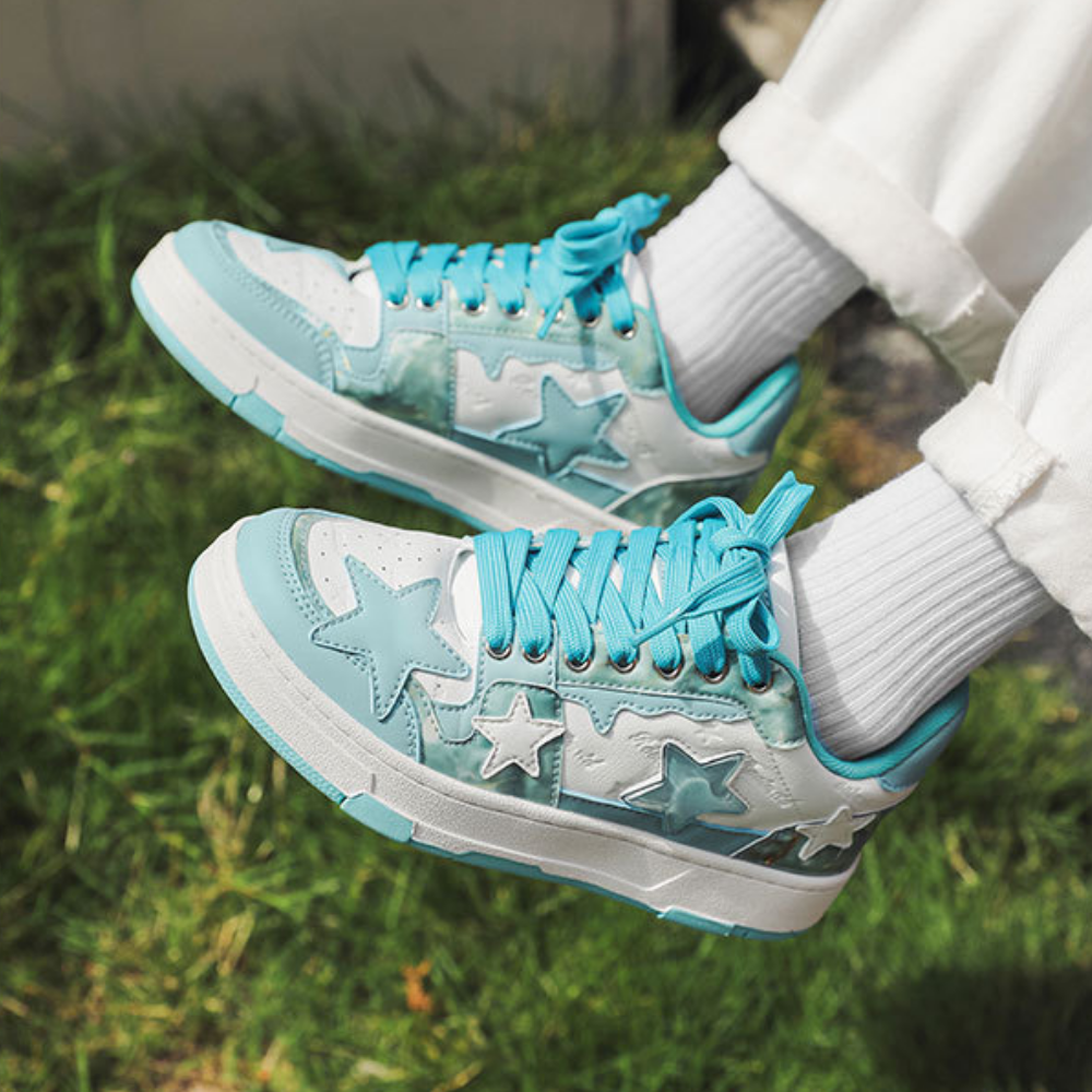 Enhance your wardrobe with the HipKiwi Sky Blue Star Element Sneakers. These shoes blend sophistication and style, with a unique twist from the contrasting rolled star pattern. Crafted for luxury, the attractive and fashionable sneaker will leave you making a statement.