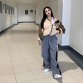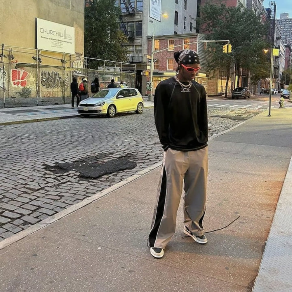 The sweatpants feature a unique paneled stripe design, adding a touch of contrast and visual interest to the overall look. The baggy fit allows for maximum comfort and ease of movement, making them ideal for lounging or running errands.