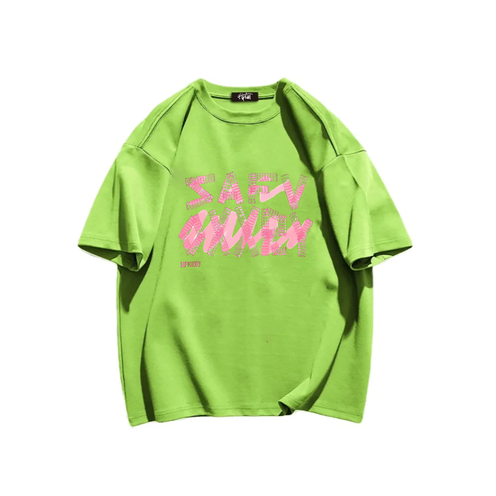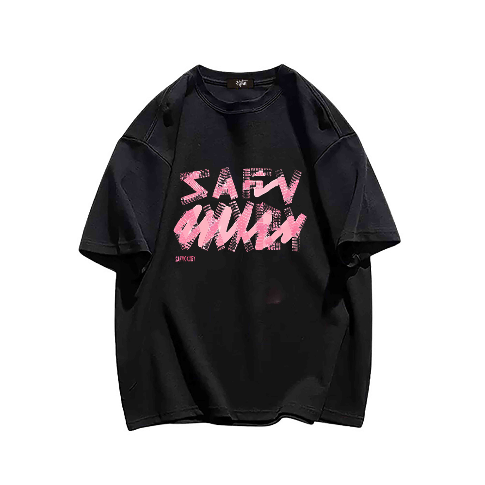 Our Pink Letters T-shirt is available in a range of sizes to ensure the perfect fit for everyone. The durable fabric and expert stitching make it a long-lasting addition to your wardrobe. Whether you're running errands or hanging out with friends, this t-shirt is the perfect choice for a casual yet trendy look.