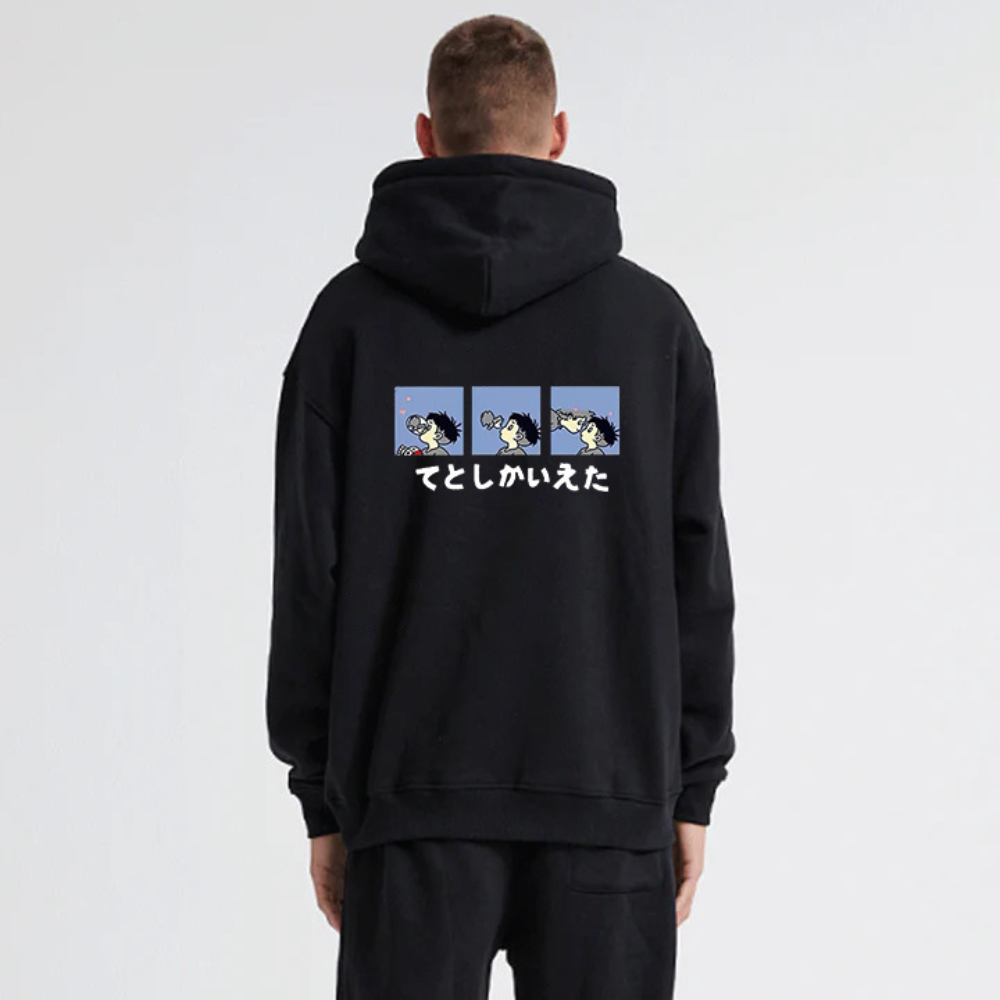 Add a touch of whimsy to your wardrobe with our "Ponyo Likes Sosuke" hoodie. Inspired by the beloved Studio Ghibli film, this hoodie features a playful design of Ponyo and Sosuke holding hands against a vibrant blue background. Made from soft and comfortable material, this hoodie is perfect for lounging at home or running errands in style.
