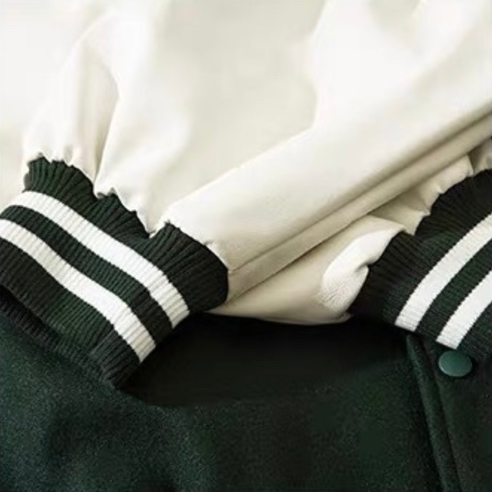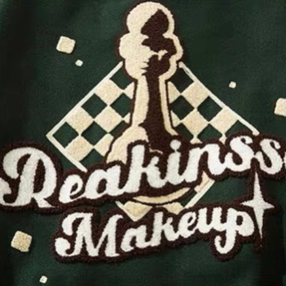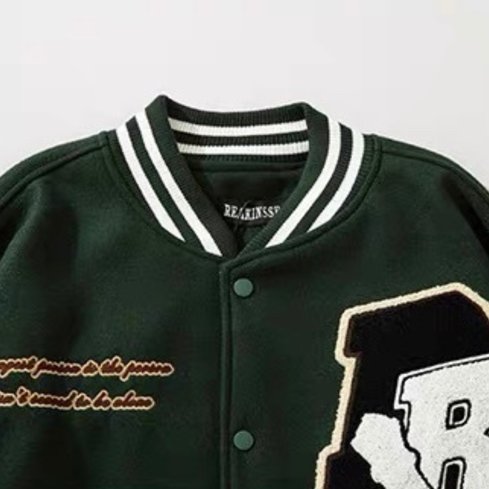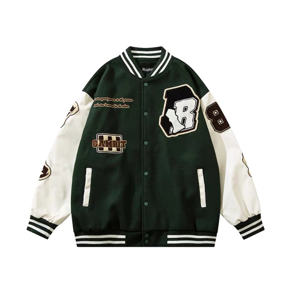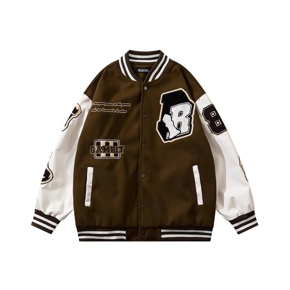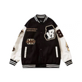 This jacket features a sleek and classic design with a baseball-style collar and ribbed cuffs and hem. The front of the jacket is adorned with a unique embroidery of a skeleton on the arms, adding a bold and edgy touch to the overall look.
