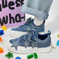 The Retro Denim Patch Star Shoes are available in a range of sizes to fit all foot sizes comfortably. The design is unisex, making it suitable for both men and women. The denim material is easy to clean and maintain, making these shoes a practical choice for everyday wear. The star patches add a fun and playful touch to the overall design, making these shoes a statement piece in any outfit.