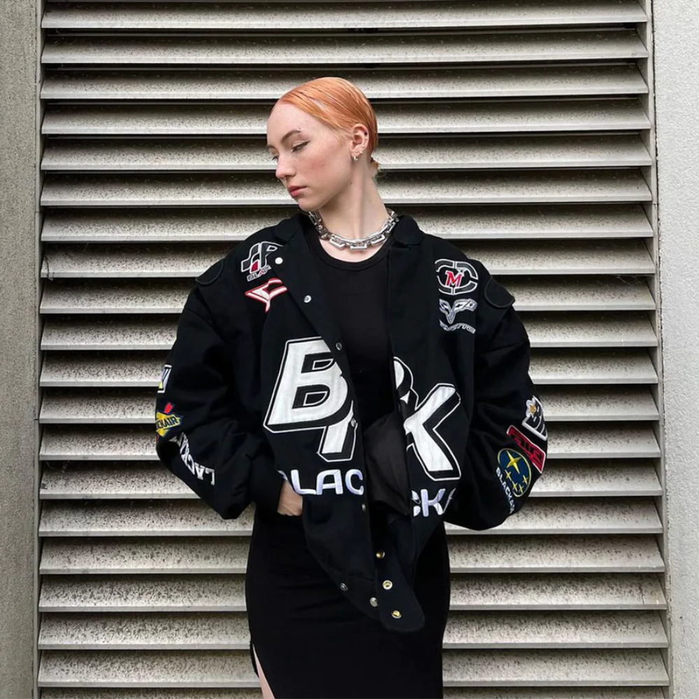 Introducing our newest addition to our collection - the Retro Letter Graphic Motorcycle Jacket. This jacket is the perfect combination of style and functionality, making it a must-have for any fashion-forward individual.