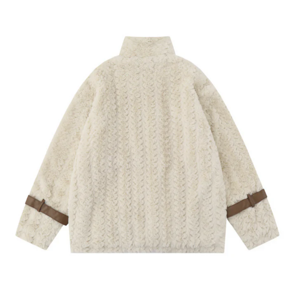 Retro PU Spliced Sherpa Coat