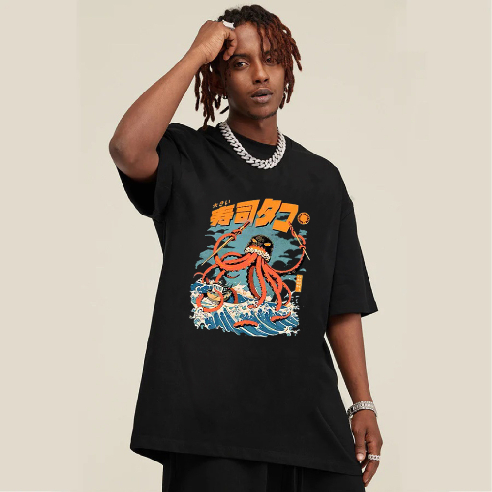 “Retro surfing creative octopus sushi sea monster illustration” T-shirt