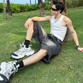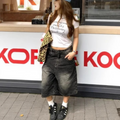 The high-waisted design and distressed detailing add a trendy edge to these shorts, making them a versatile piece that can be dressed up or down. The button and zipper closure provide a secure fit, while the five-pocket design adds functionality. These shorts are the perfect addition to your summer wardrobe, whether you're heading to a music festival or a day out with friends.