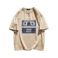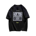 Available in a range of sizes, this t-shirt is suitable for both men and women. It is also machine washable, making it easy to care for and maintain its vibrant colors and design. Whether you're dressing up for a night out or keeping it casual, the Round Neck Banknote Tape T-shirt is the perfect addition to your wardrobe.