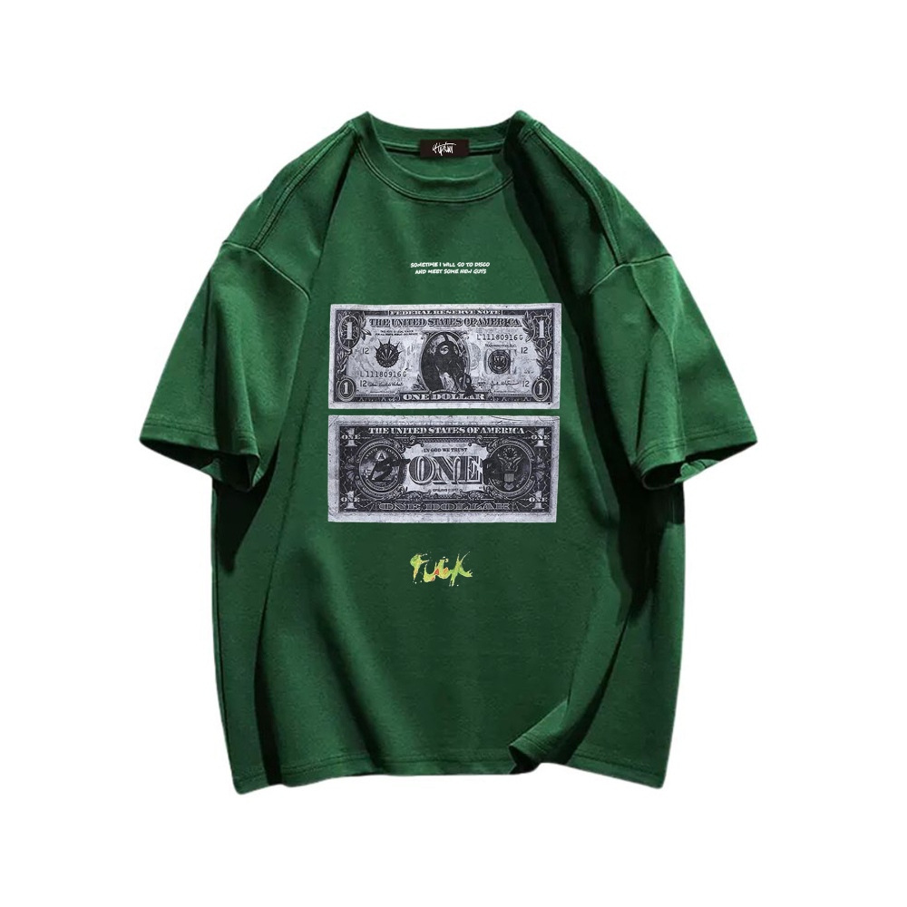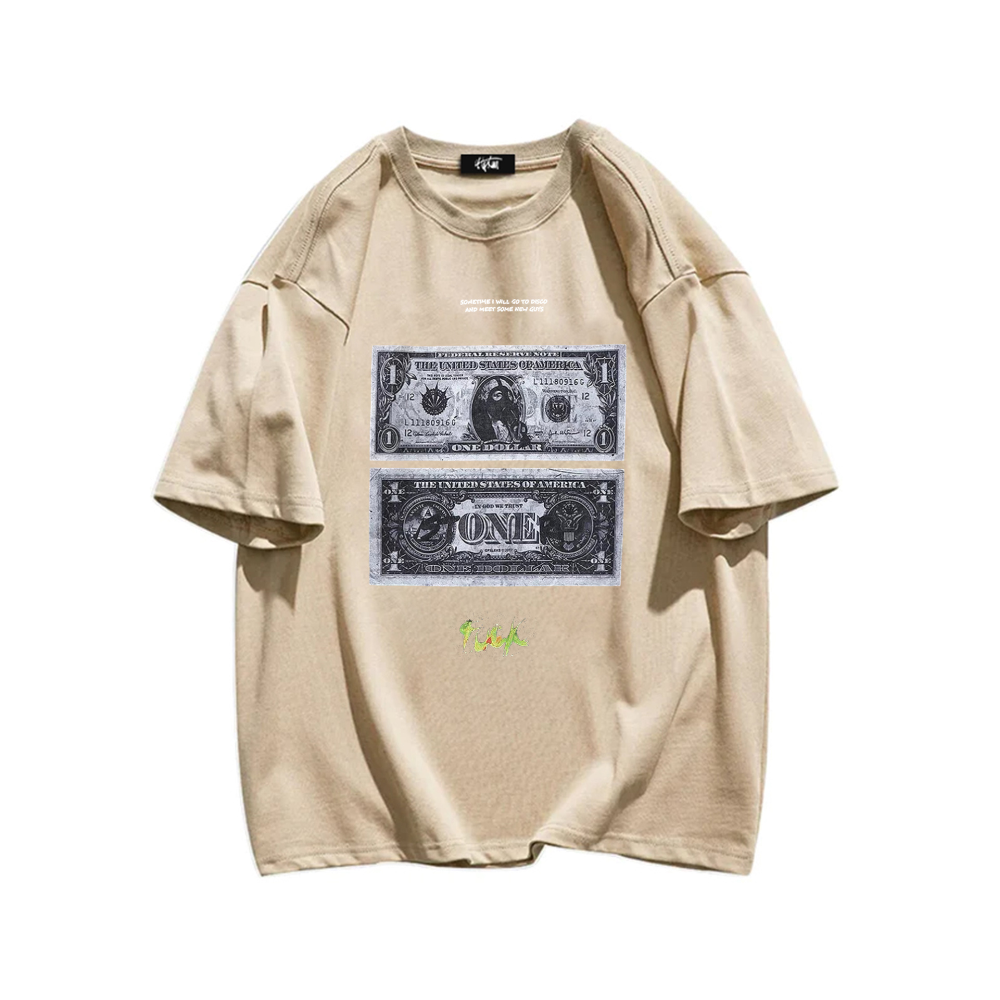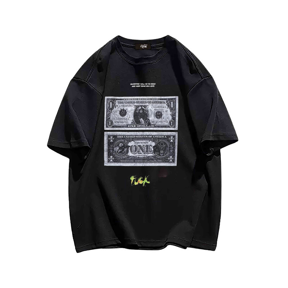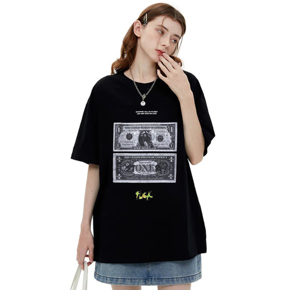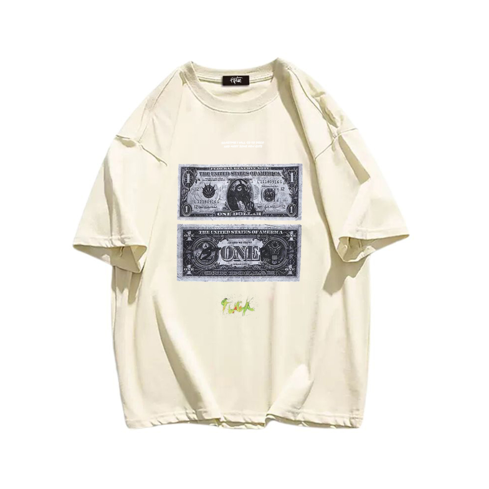 Introducing our latest addition to the Hip Kiwi collection - the Round Neck Banknote Tape T-shirt. This unique and stylish t-shirt features a round neck design and a bold banknote tape print, making it a must-have for any fashion-forward individual.