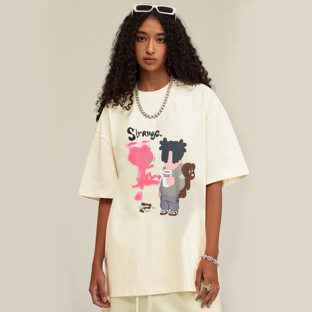 Made from high-quality cotton, this t-shirt is not only comfortable to wear but also durable, ensuring it will be a staple in your wardrobe for years to come. The soft fabric and relaxed fit make it perfect for everyday wear, while the unique design sets it apart from your average t-shirt.