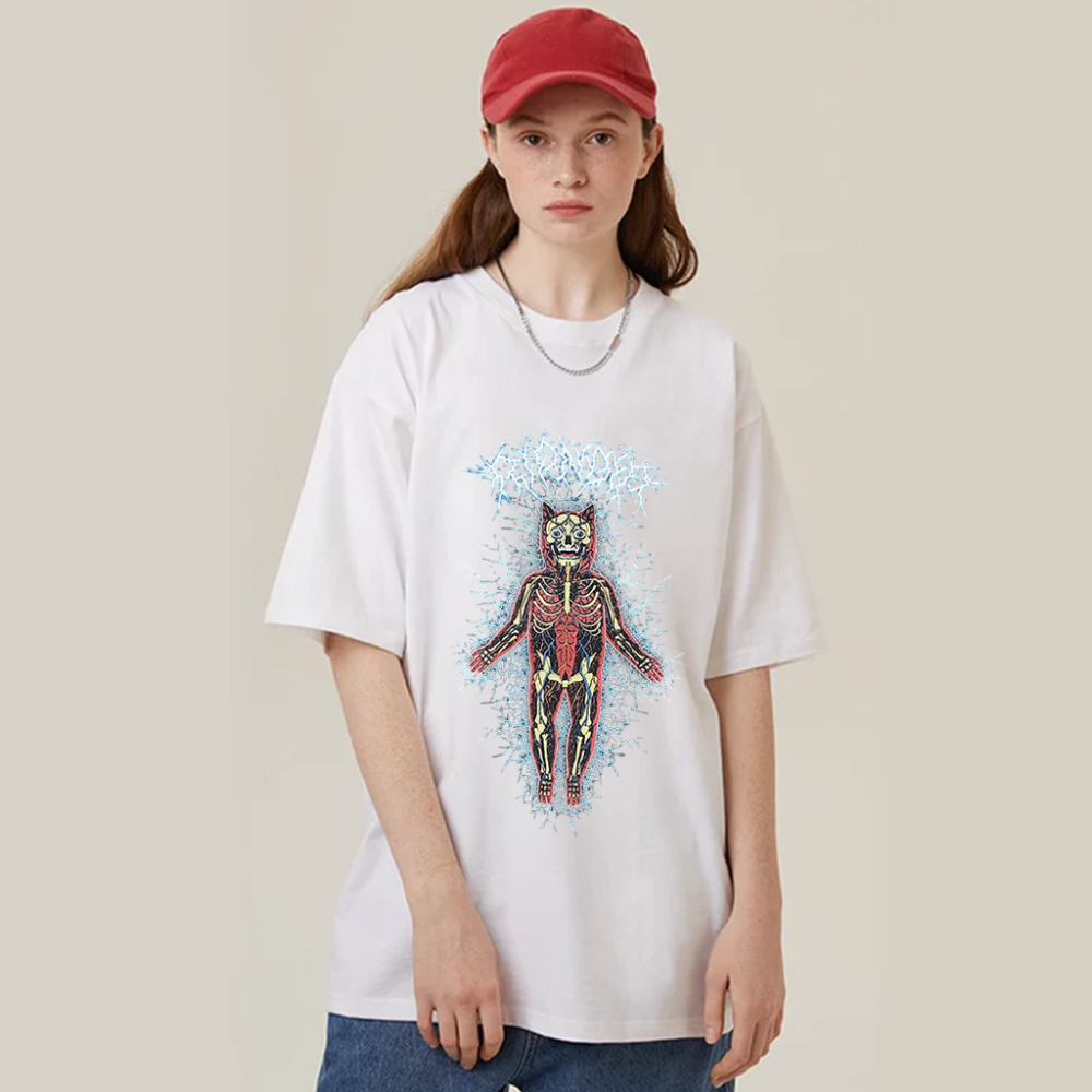 The Skeleton Dog Of Thorns T-shirt is available in a range of sizes and is suitable for both men and women. The design is printed using state-of-the-art technology, ensuring vibrant colors and long-lasting durability. Whether you're a fan of gothic fashion or simply looking for a statement piece, this t-shirt is sure to turn heads and spark conversations.