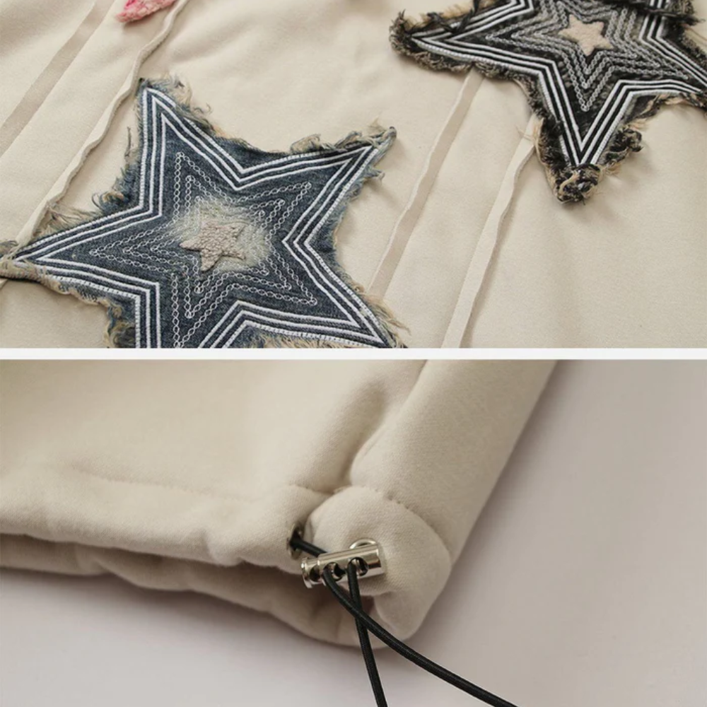The standout feature of this hoodie is the star applique design on the front. It adds a touch of uniqueness and personality to the classic hoodie style. The design is eye-catching and trendy, making it a must-have for any fashion-forward individual.