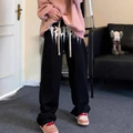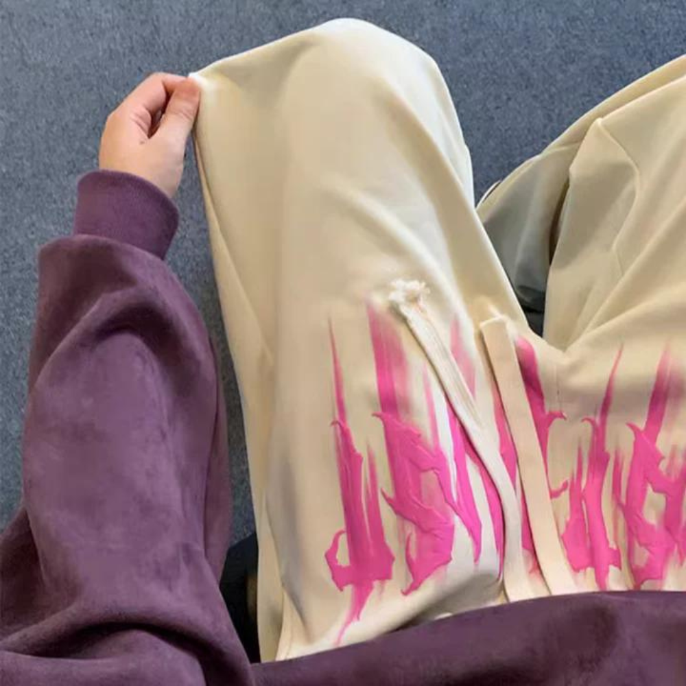 The standout feature of these sweatpants is the personalized graffiti design. Each pair is hand-painted with a unique street alphabet design, making them one-of-a-kind. You can choose to have your name or a word of your choice painted on the sweatpants, adding a personal touch to your outfit.