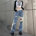 Made from high-quality denim, these jeans are not only stylish but also comfortable to wear. The straight leg cut elongates your legs and creates a flattering silhouette. The patchwork details are carefully crafted, adding a touch of urban flair to your outfit.