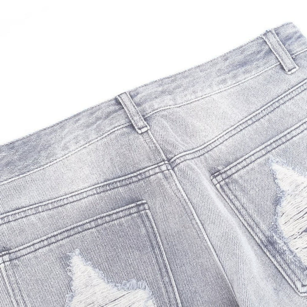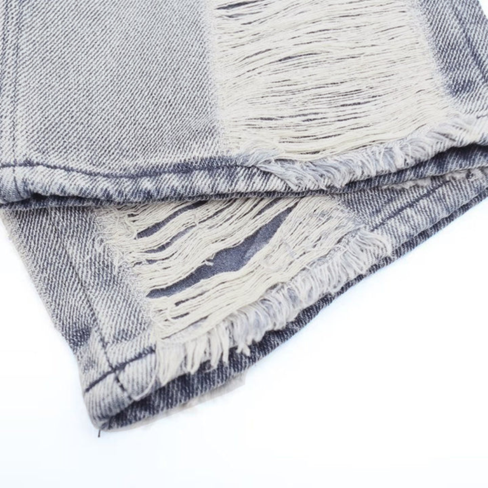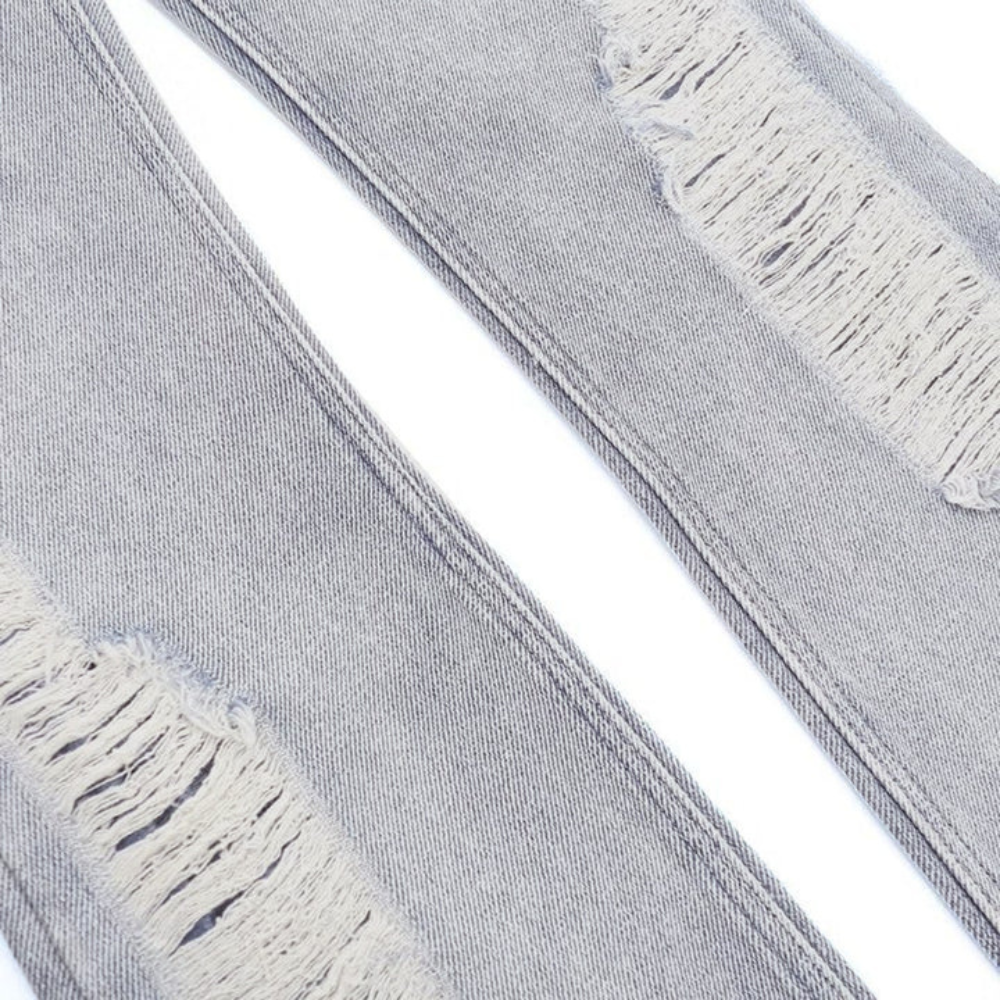 Upgrade your street style with our Street Side Ripped Straight Jeans. These jeans feature a modern and edgy design with strategically placed rips and tears along the front and back. Made from high-quality denim, these jeans are durable and comfortable for all-day wear. The straight leg cut gives a flattering and versatile fit, perfect for any occasion. The distressed details add a touch of attitude to your outfit, making these jeans a must-have for any fashion-forward individual.