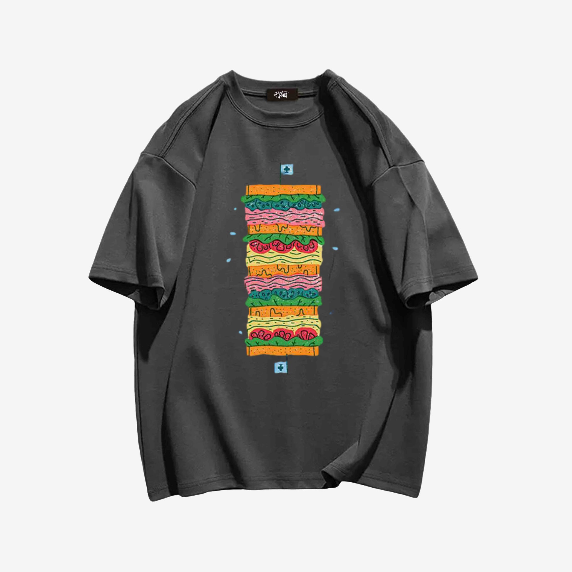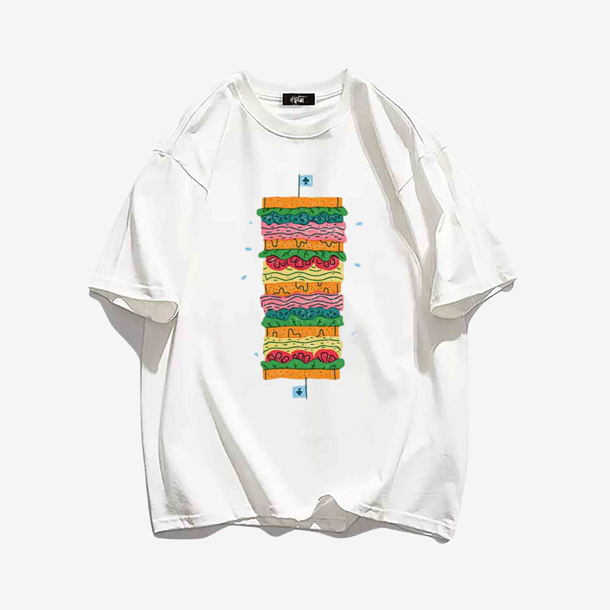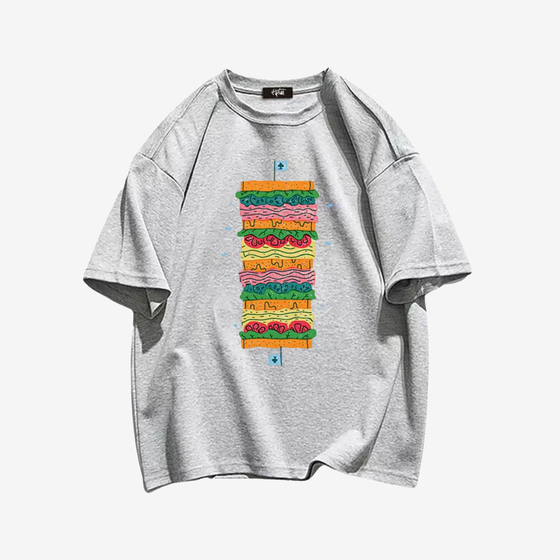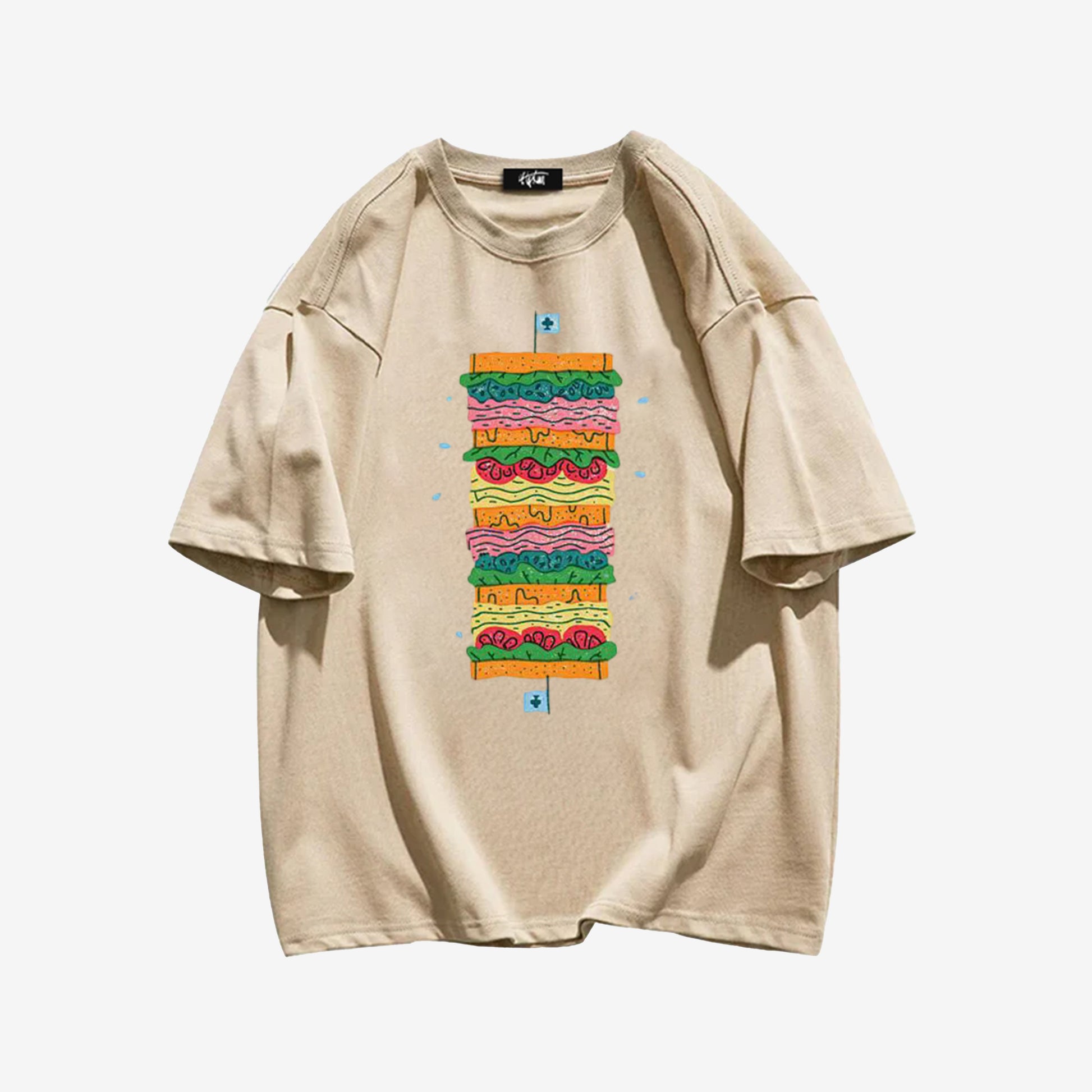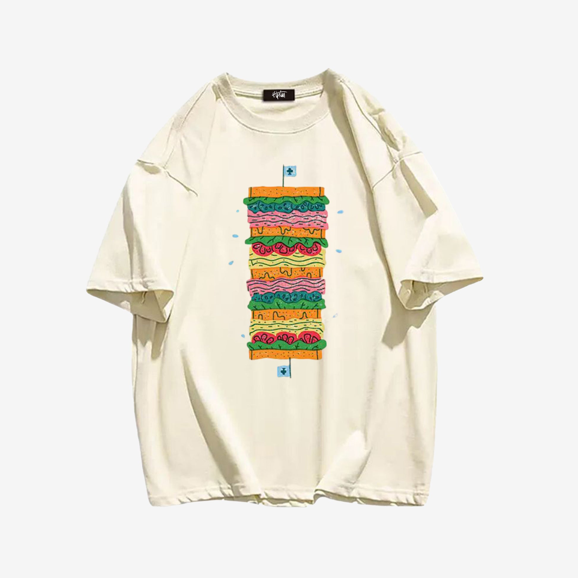 "Style trendy cartoon multi-layer hamburger print" T-shirt