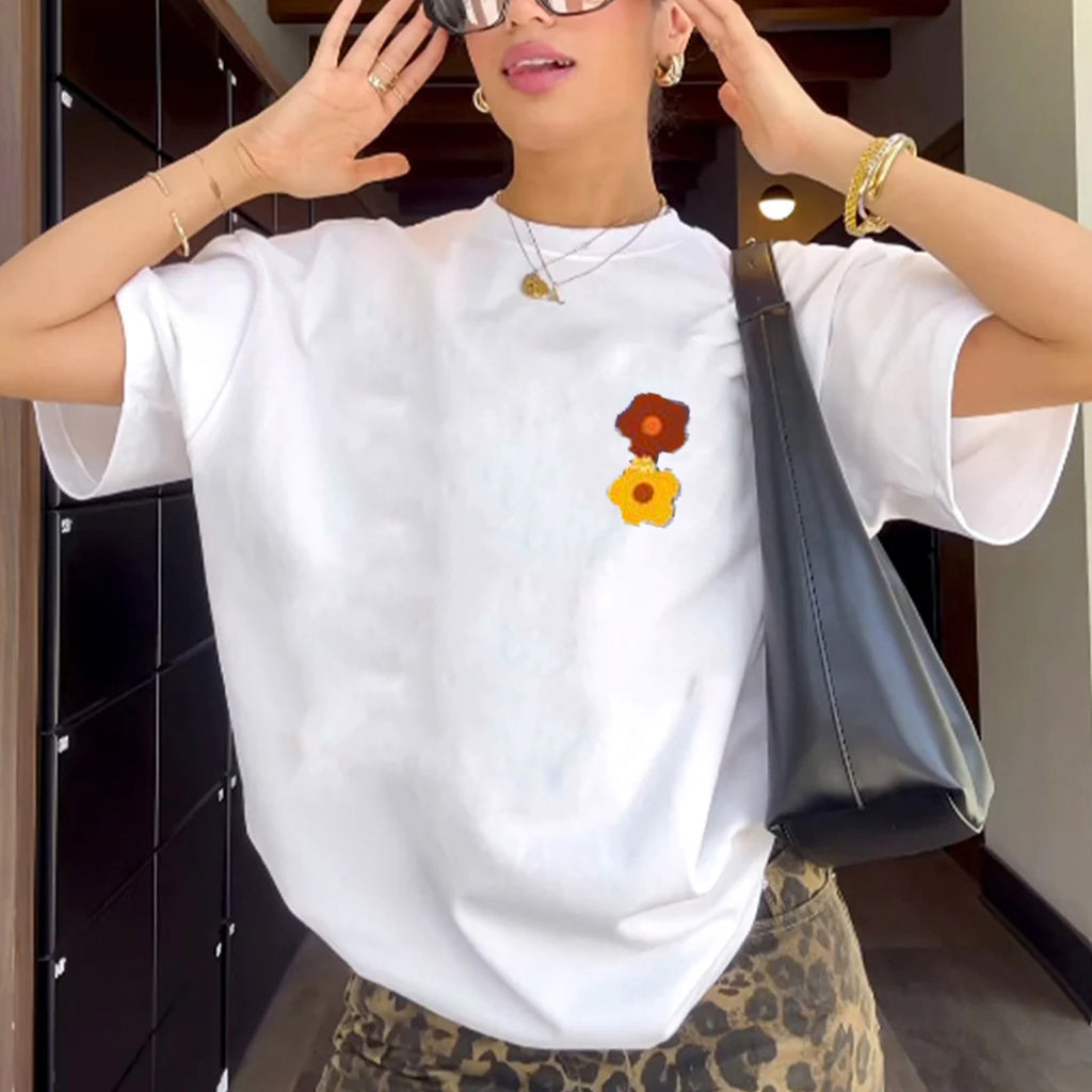"Style trendy cartoon simple small flower print" T-shirt