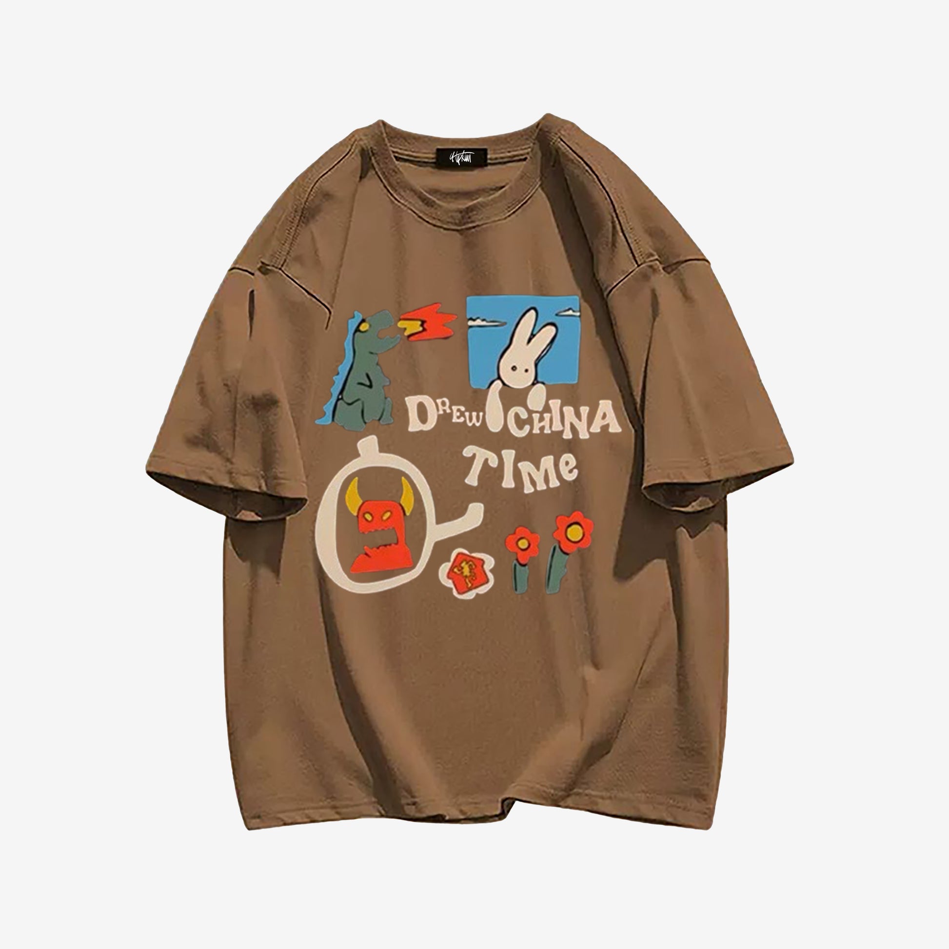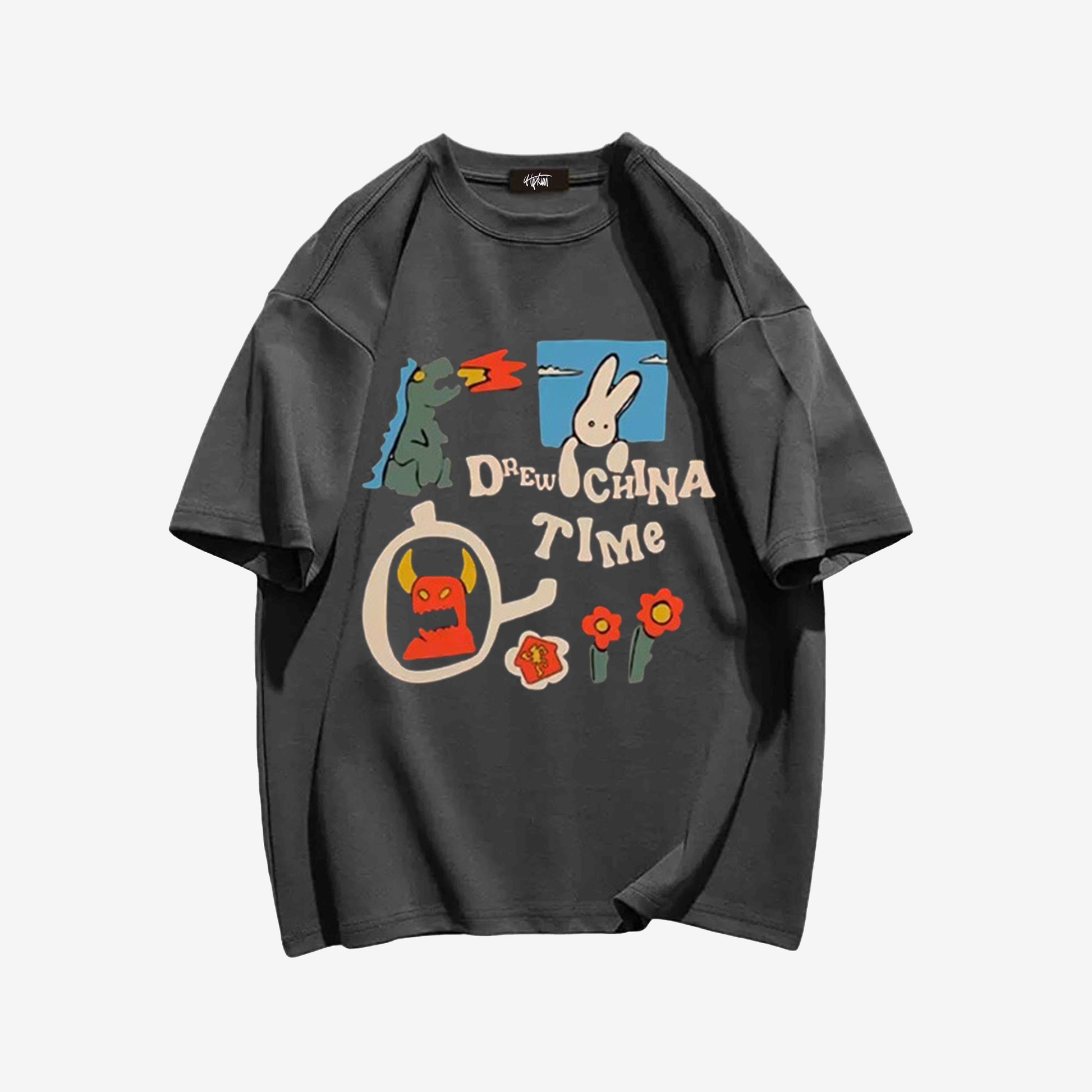 "Style trendy fun cartoon dinosaur rabbit print" T-shirt