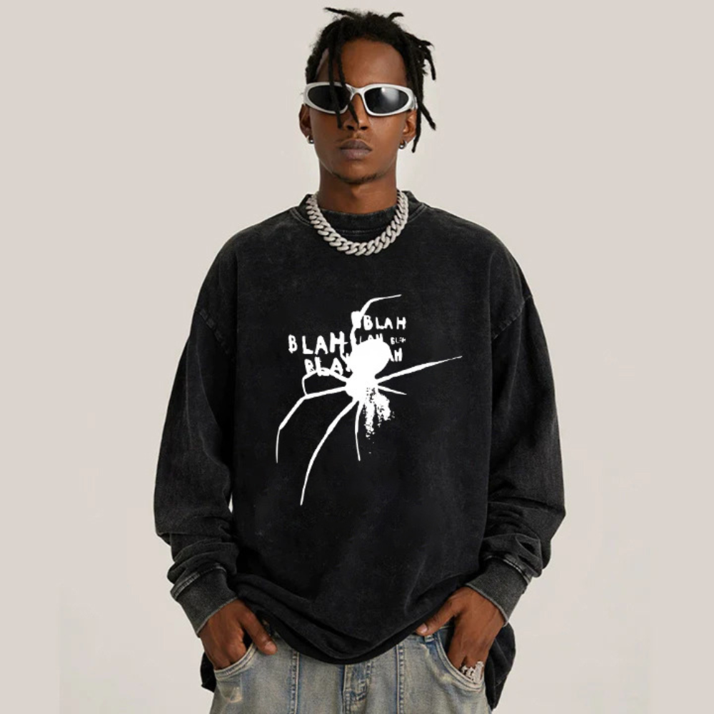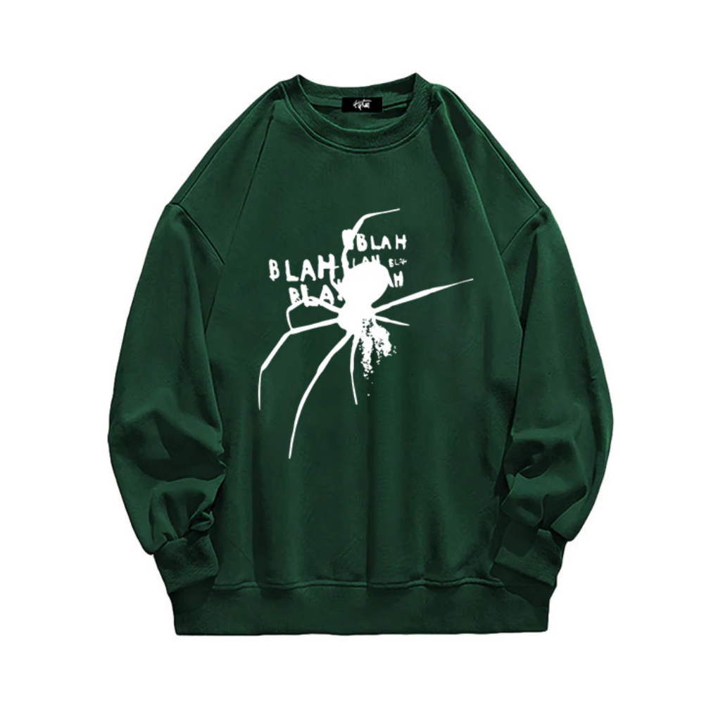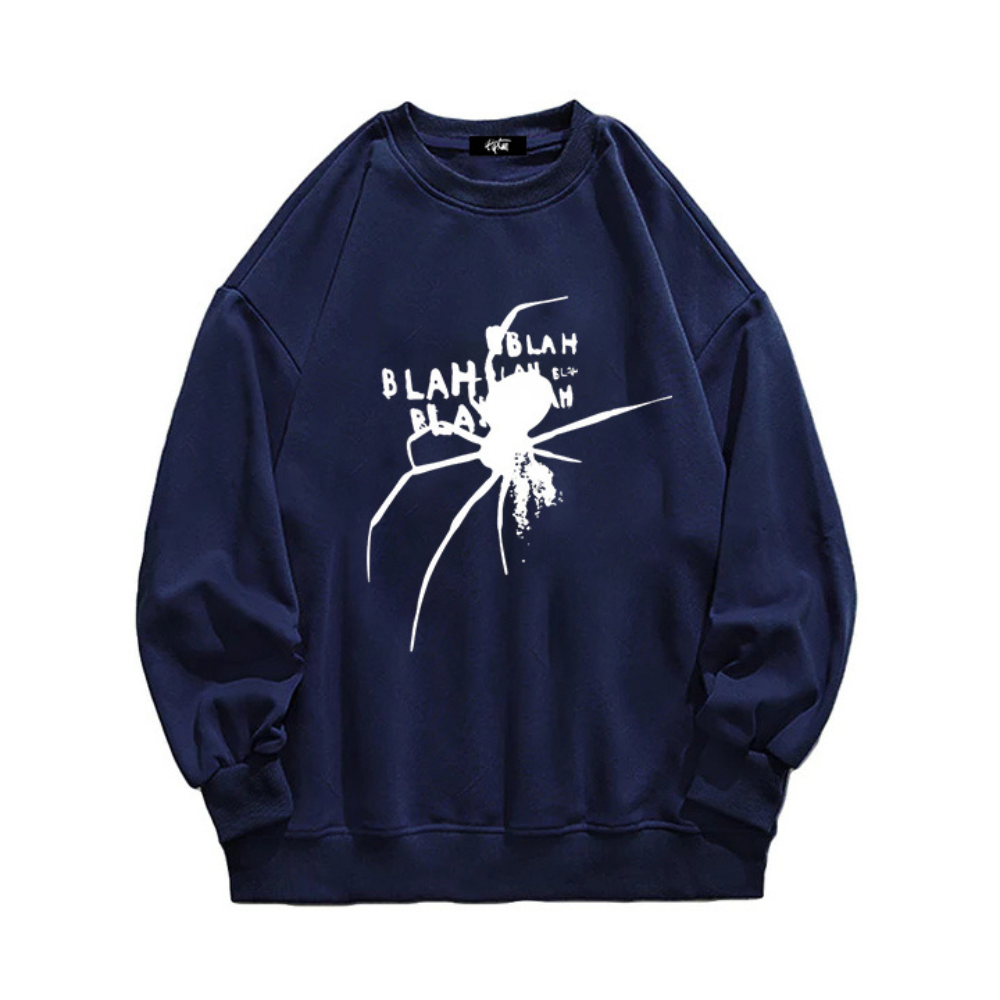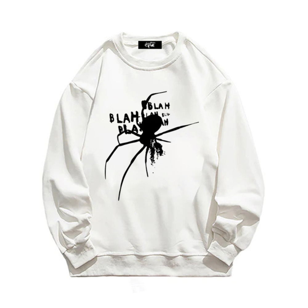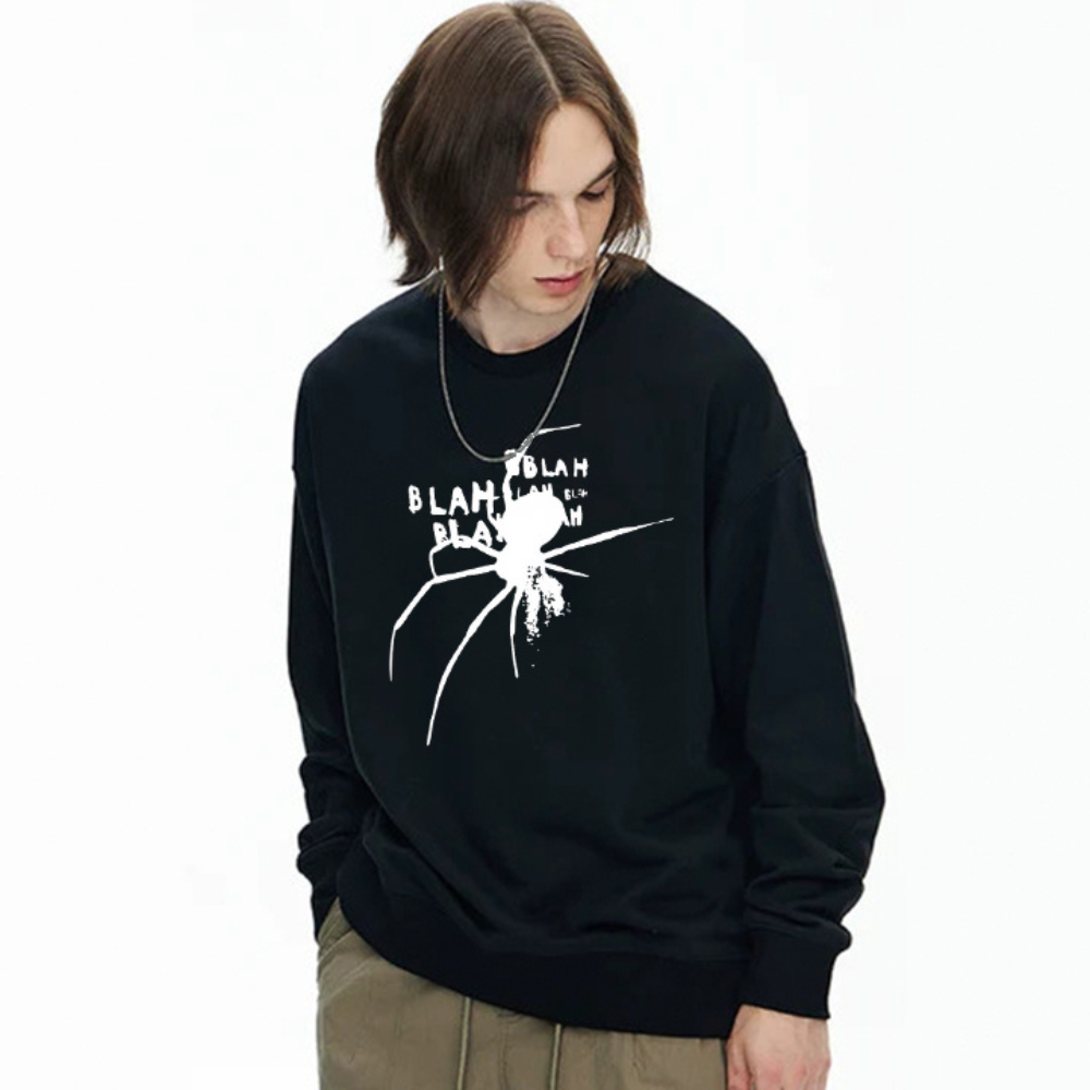 The sweatshirt is designed to be durable and long-lasting, making it a reliable choice for everyday wear. The monochrome color scheme allows for easy pairing with any other colors, making it a staple piece in your wardrobe. The spider and letter print adds a touch of edginess to the overall look, making it a statement piece that will surely turn heads.
