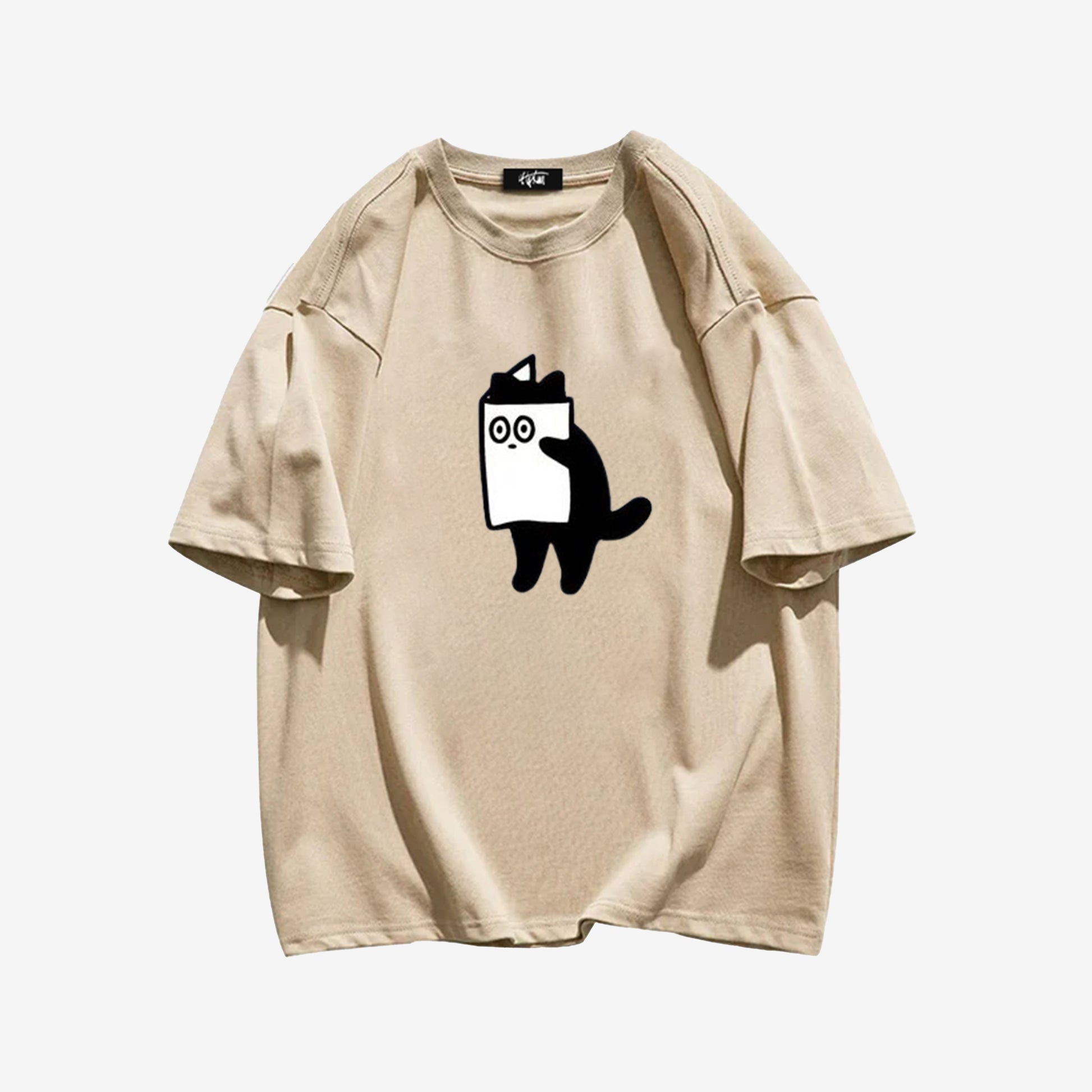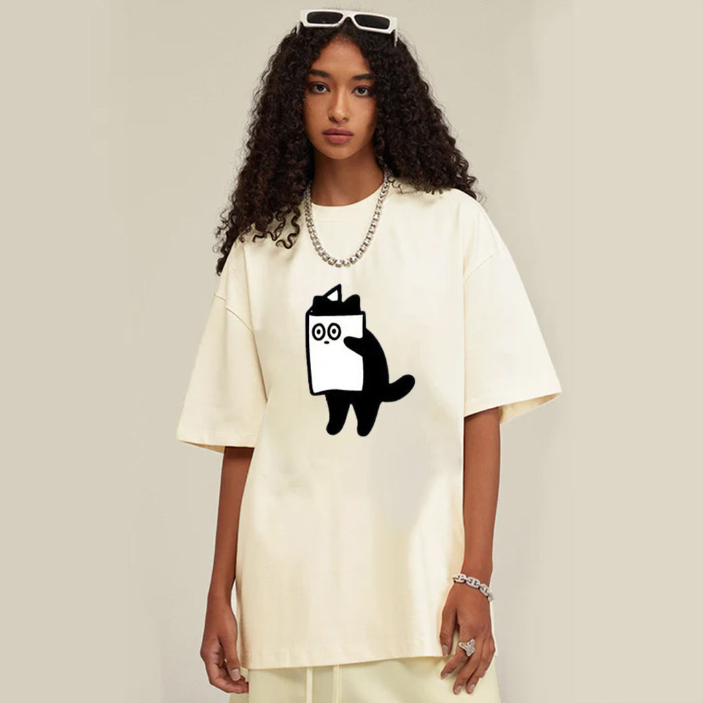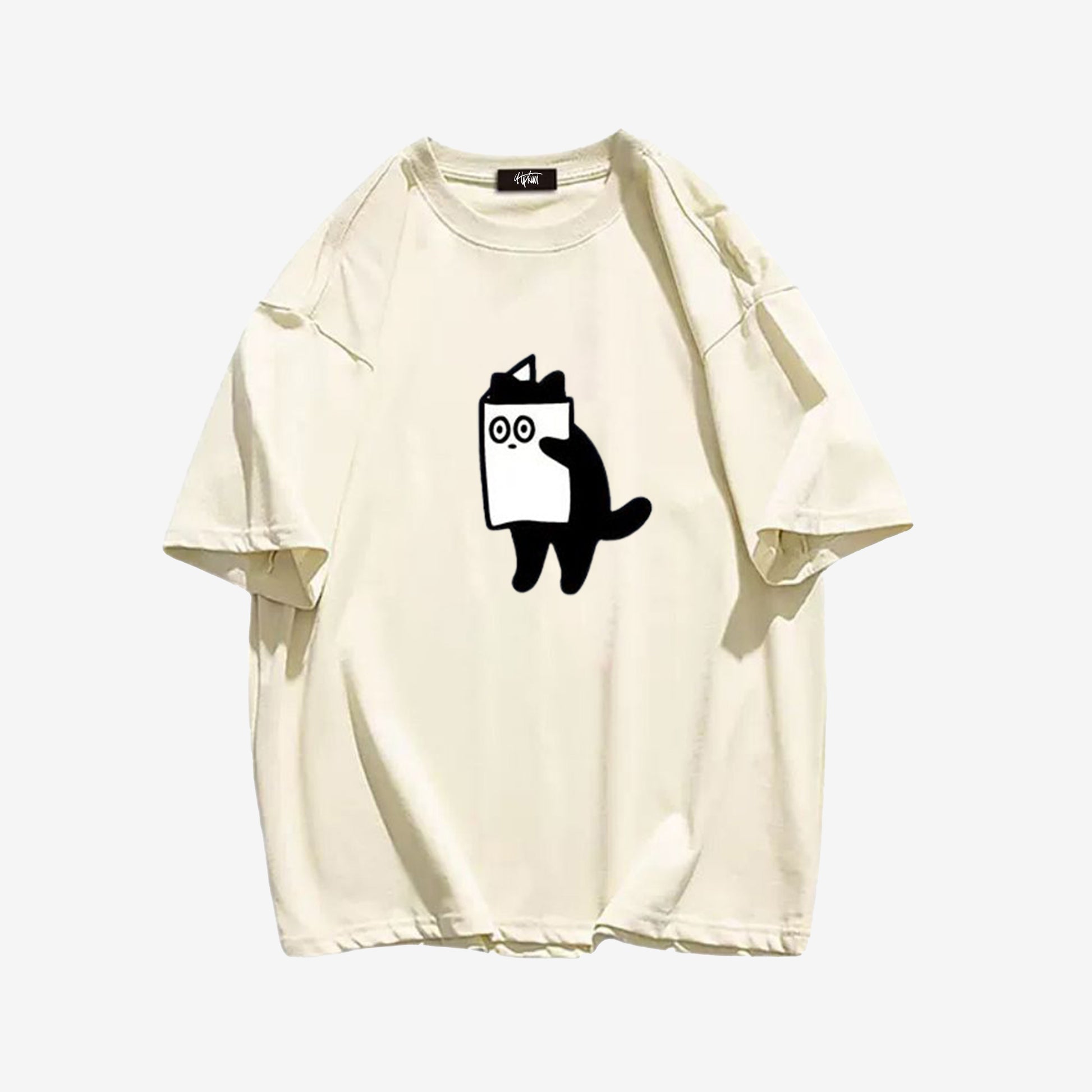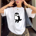 "Style trendy niche cartoon reading kitten print" T-shirt
