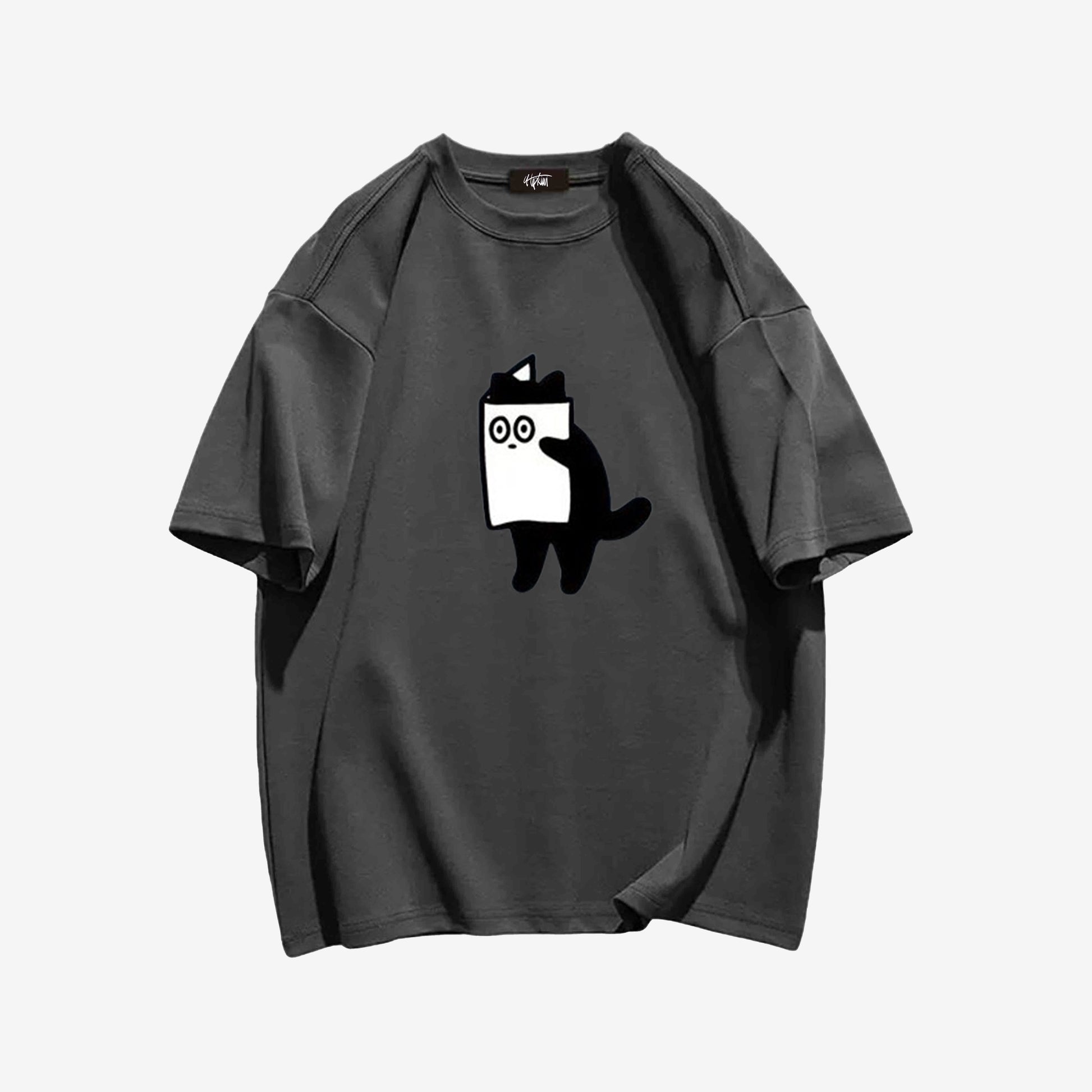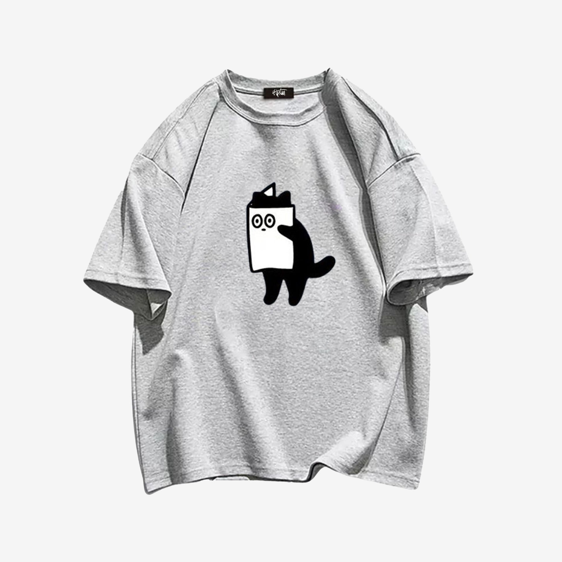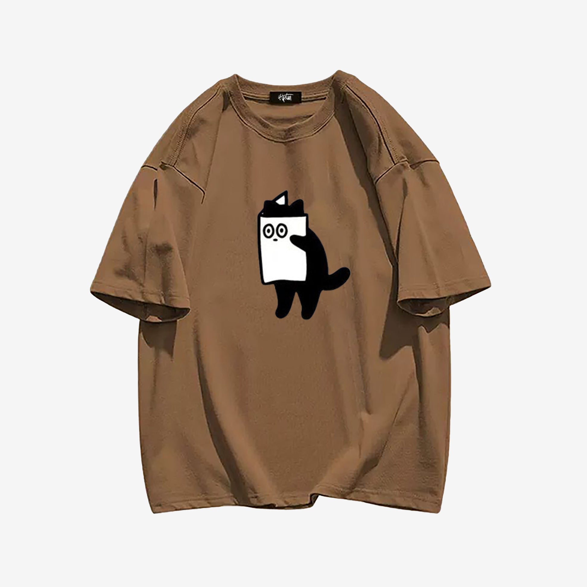 "Style trendy niche cartoon reading kitten print" T-shirt