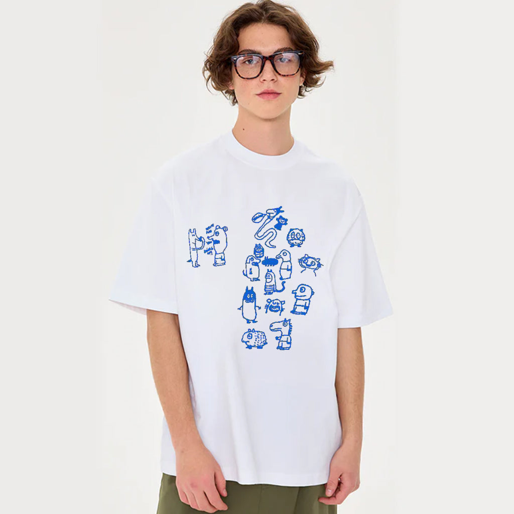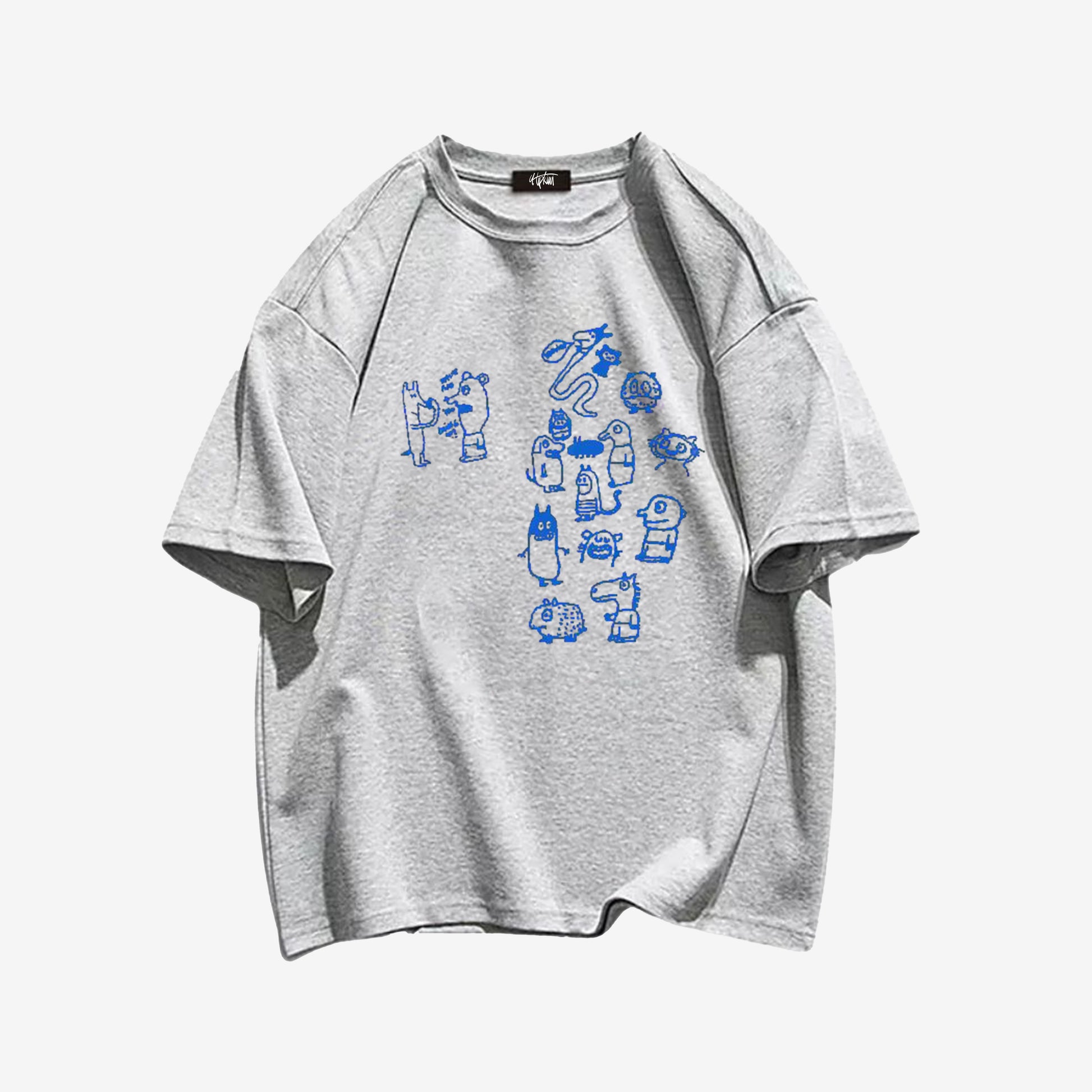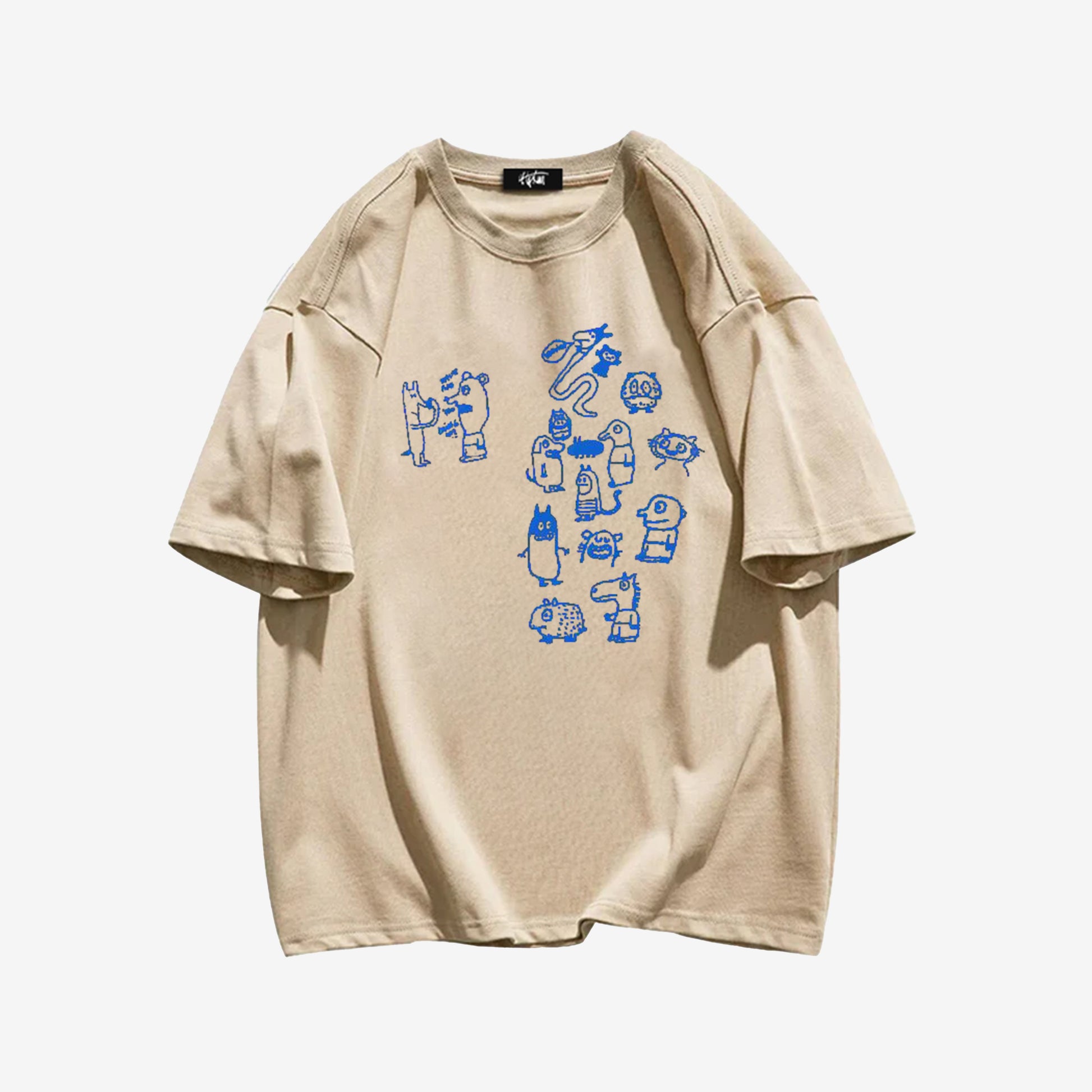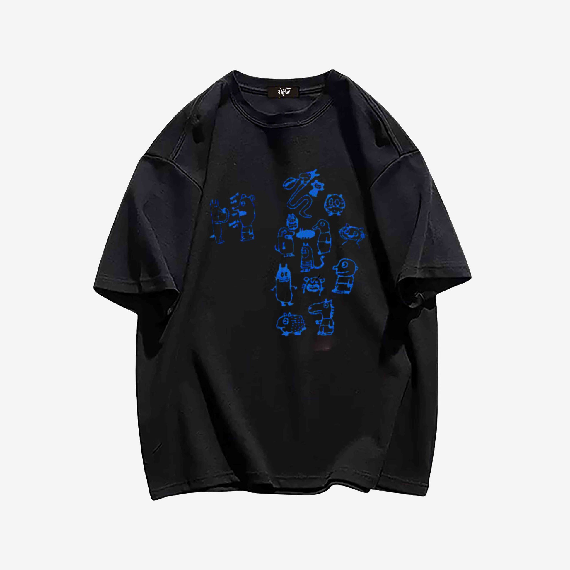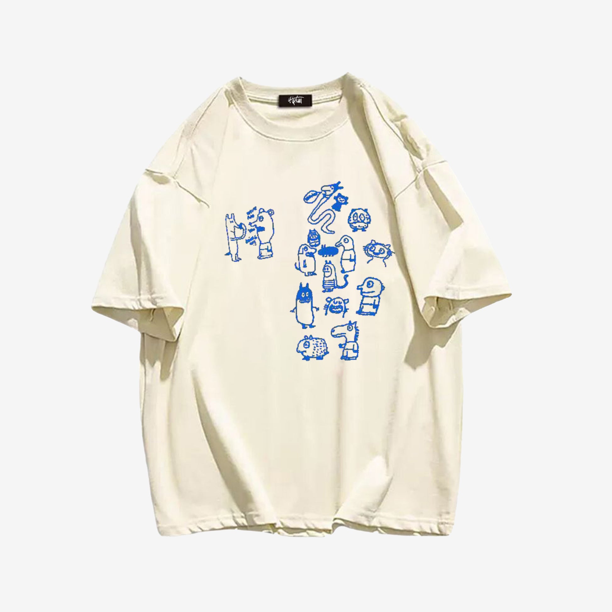 "Style trendy solid color cartoon character graffiti print" T-shirt