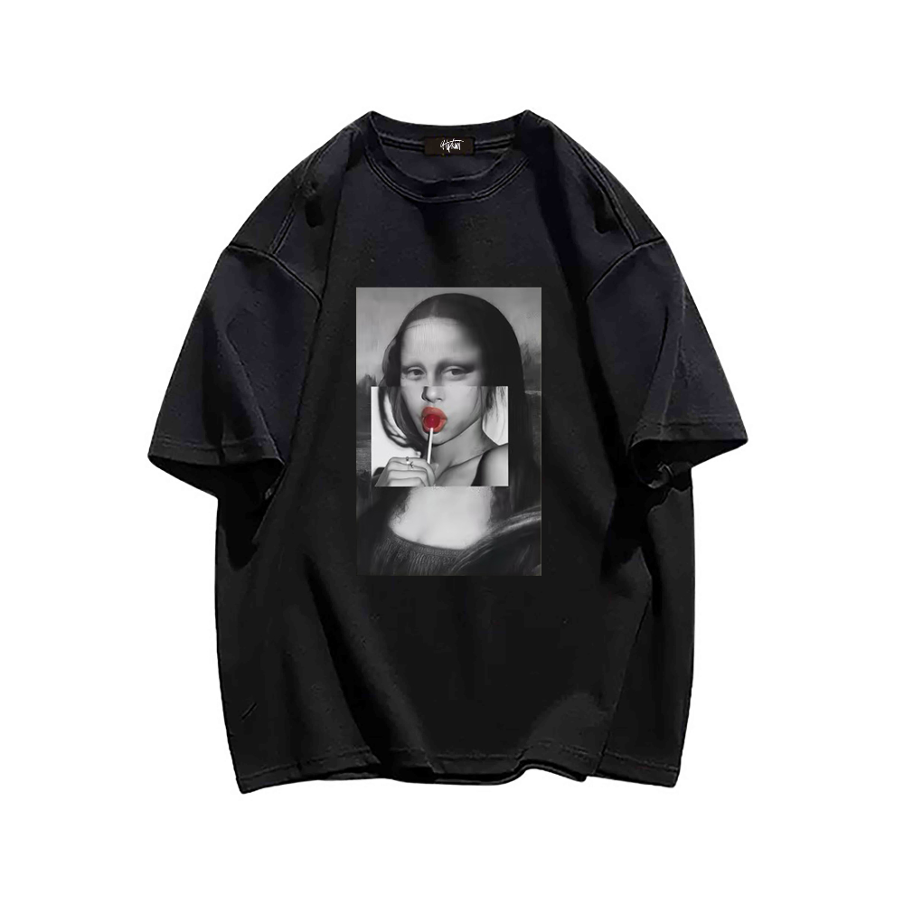 Indulge in the sweet side of art with our "Sugar Loving Mona Lisa" T-shirt. This unique and eye-catching design features the iconic Mona Lisa painting, but with a twist - she's surrounded by colorful candy and treats. Made from soft and comfortable cotton, this T-shirt is perfect for any art lover or anyone with a sweet tooth.