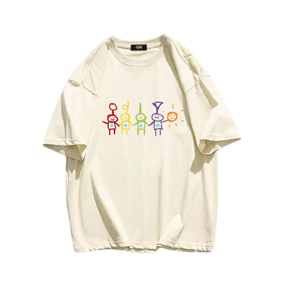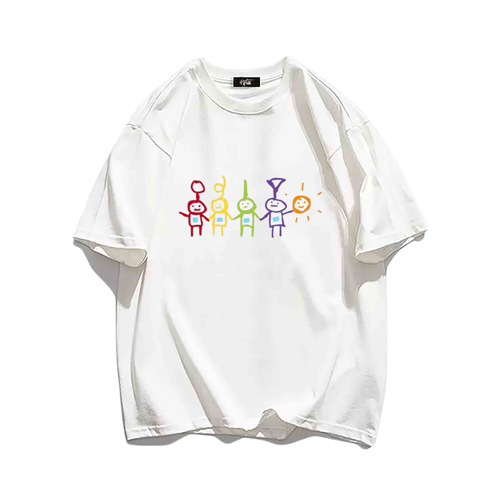 Made from high-quality, soft cotton material, this T-shirt is not only comfortable to wear but also durable. The vibrant colors and playful graphics of the Teletubbies will surely bring a smile to your face and brighten up your day.