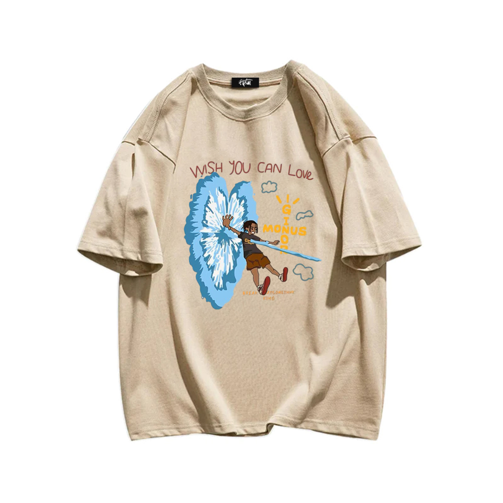 The design features a powerful swordsman surrounded by a magical aura, representing the strength and passion of love. The intricate details and vibrant colors make this t-shirt a standout piece that is sure to turn heads and spark conversations.