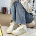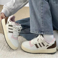 The thick bottom design not only adds a trendy touch to the shoes, but also provides extra support and cushioning for your feet. The three lines on the side add a unique and eye-catching detail, making these shoes stand out from the rest.