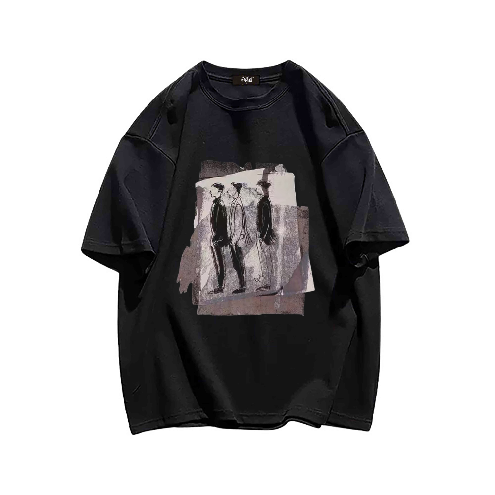 The Three Graffiti Men T-shirt is available in a range of sizes to fit all body types. The design is unisex, making it a versatile piece for both men and women. The t-shirt is also machine washable, making it easy to care for and maintain. Whether you're hanging out with friends or attending a music festival, this t-shirt will make you stand out in the crowd.