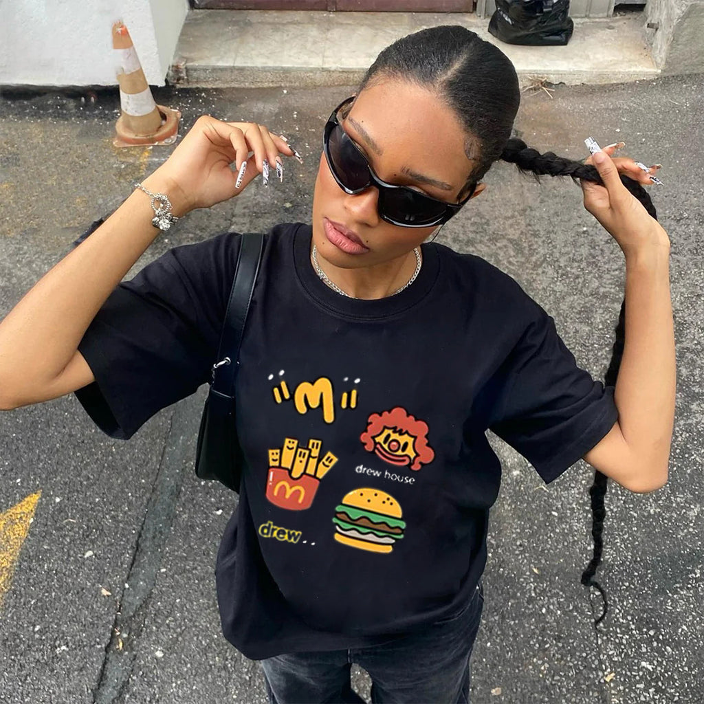 "Trendy cartoon McDonald's hamburger print" T-shirt