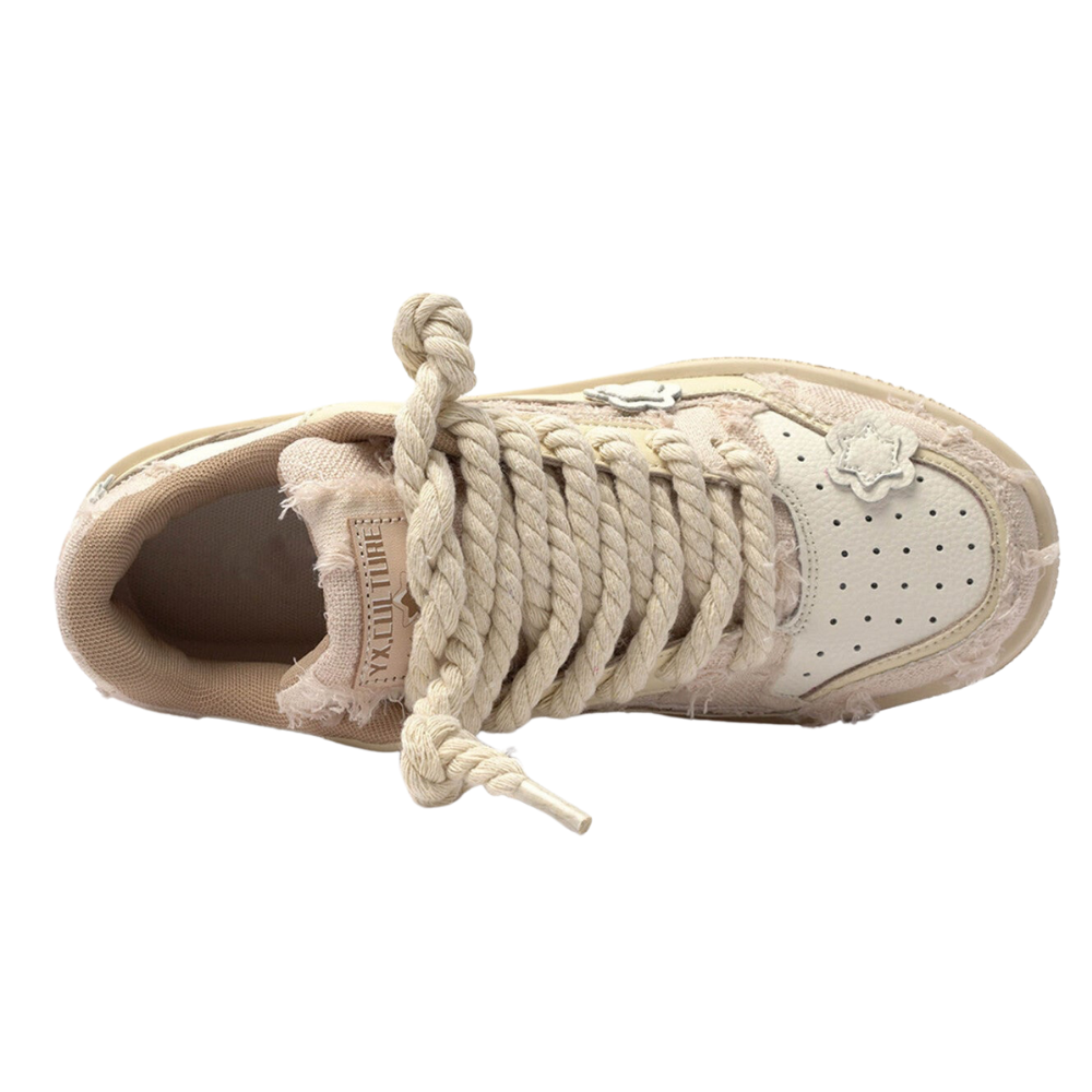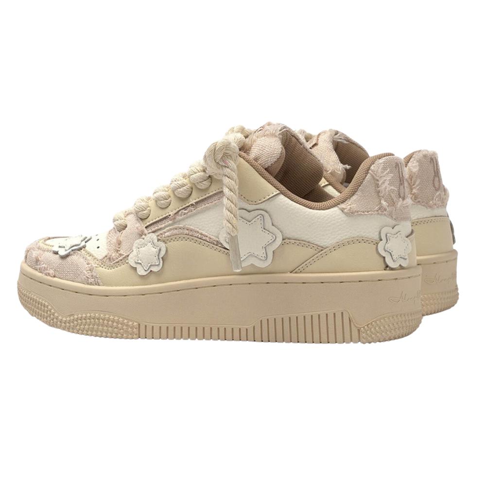 Enhance your wardrobe with the Hipkiwi Milk Tea Element Sneakers. These shoes blend sophistication and style, with a unique twist from the contrasting rolled wheat ear pattern. Crafted for luxury, the attractive and fashionable sneaker will leave you making a statement.