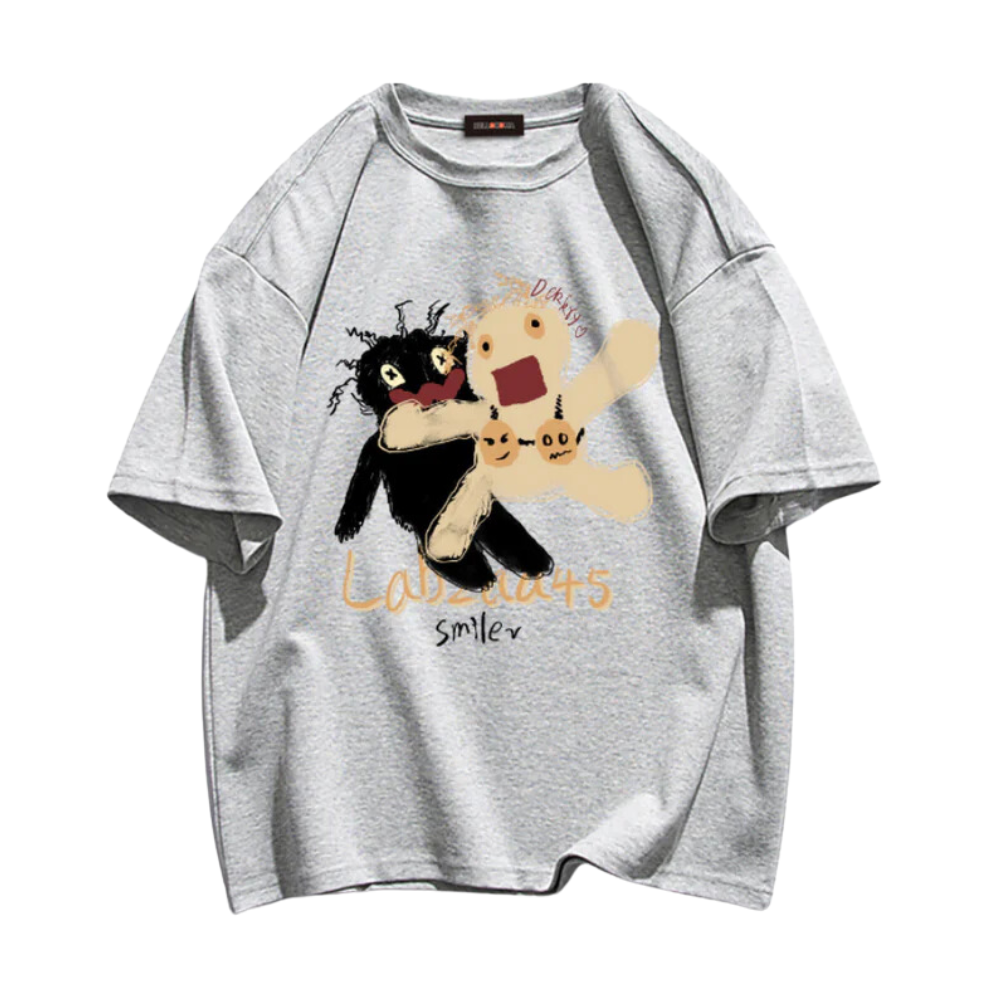 The bold cartoon graphic on the front of the shirt is sure to turn heads and make you stand out from the crowd. The vibrant colors and unique design make this t-shirt a must-have for any fashion-forward individual.