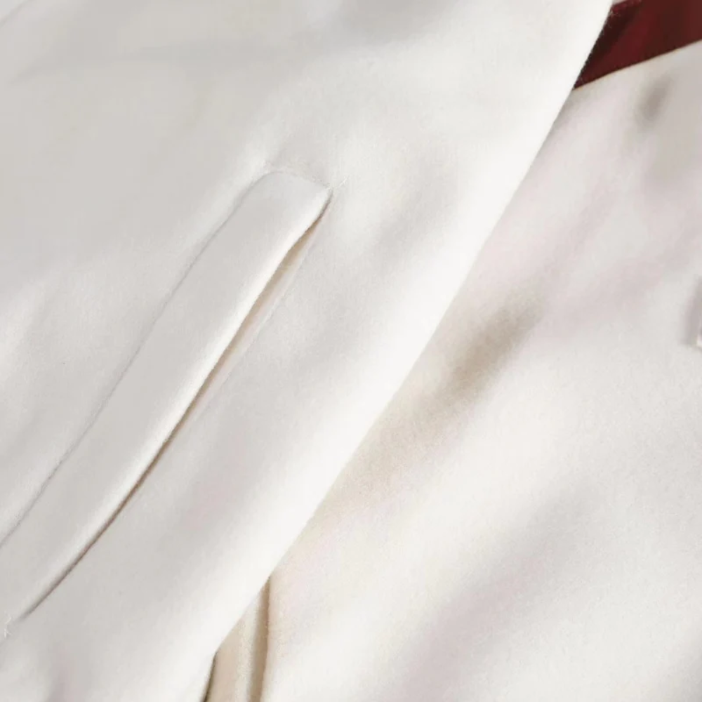The standout feature of this jacket is the intricate letter embroidery on the back, adding a unique and personalized touch to your outfit. The embroidery is expertly crafted, giving the jacket a premium and luxurious feel. It's the perfect statement piece to elevate any casual look.
