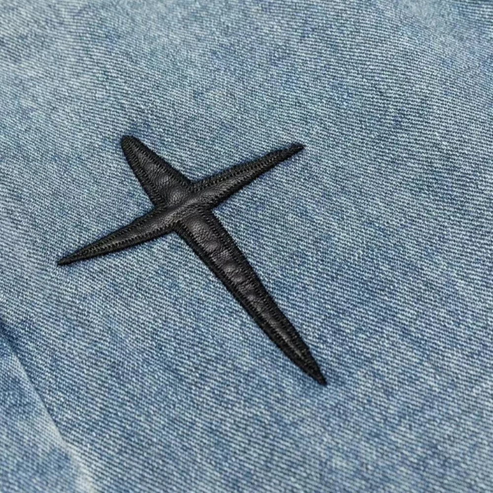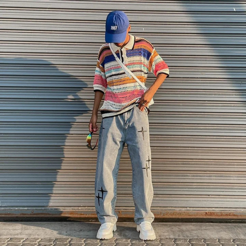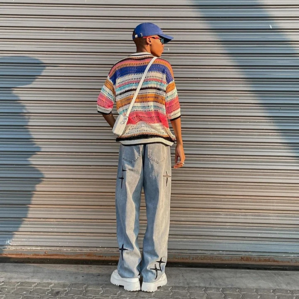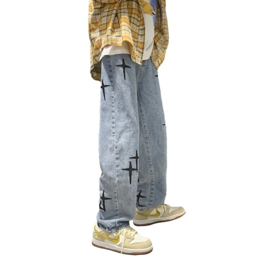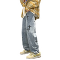 Upgrade your denim game with our latest innovation - the Urban Cross Graphic Straight Leg Jeans. These jeans are designed to elevate your street style with their unique graphic print and straight leg fit. Made from high-quality denim, these jeans offer both comfort and style.