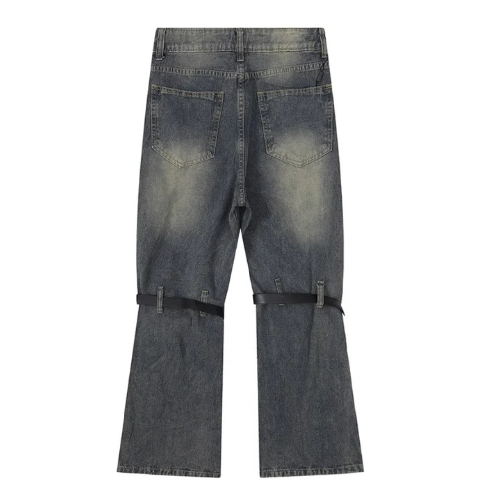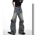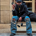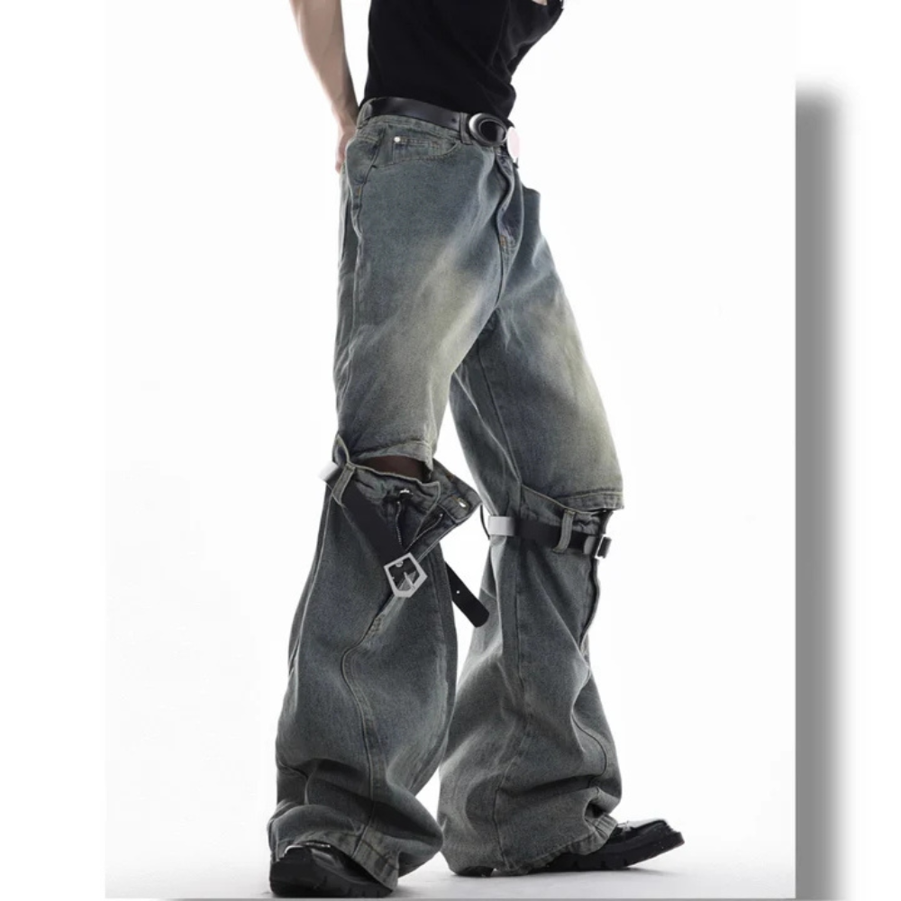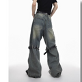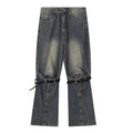 The lace-up panel is strategically placed on the sides of the jeans, creating a flattering silhouette and giving you the option to adjust the fit to your liking. The lace-up design also adds a trendy and modern touch to the traditional baggy jeans, making them a must-have for any fashion-forward individual.