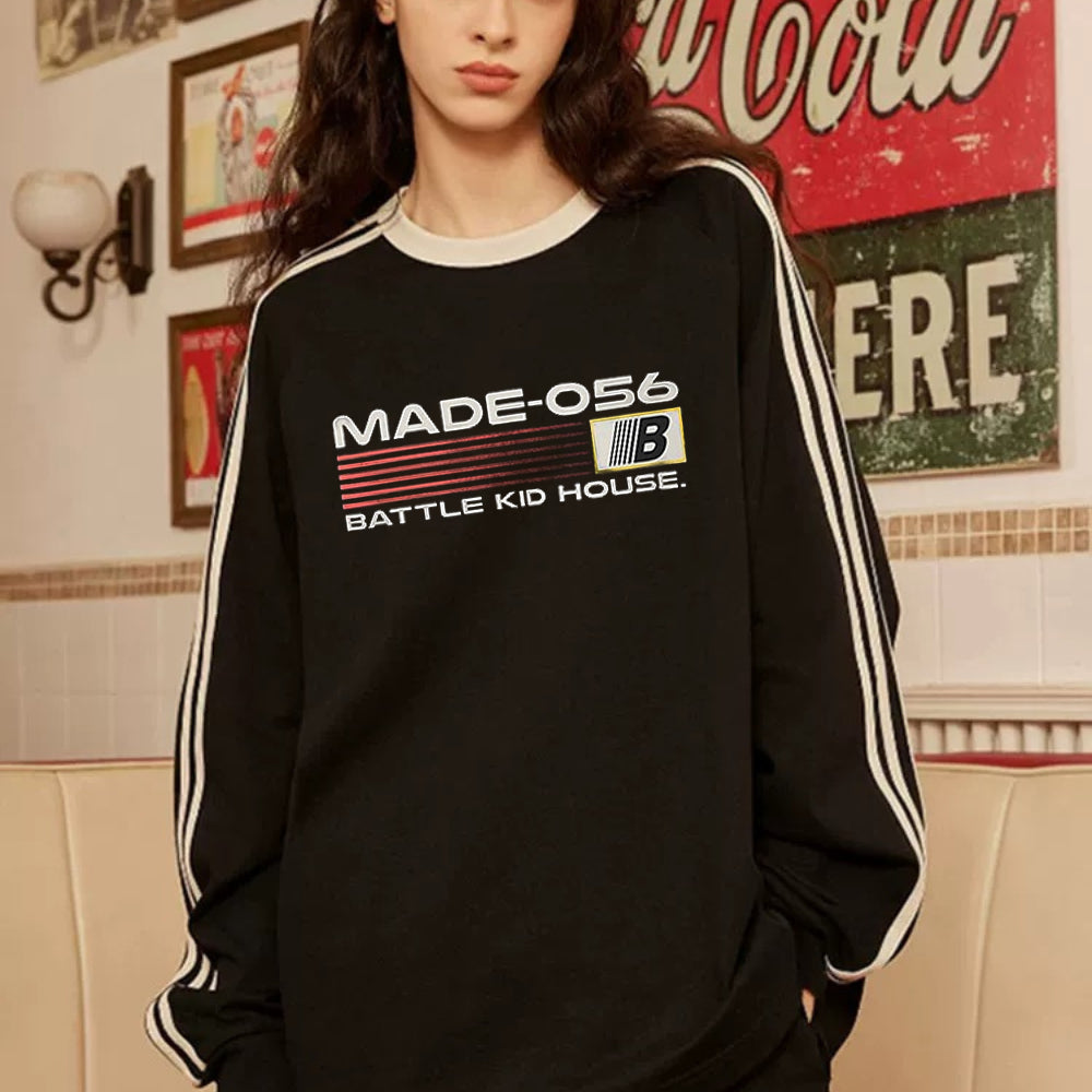The sweatshirt features a unique line badge printing design, adding a touch of uniqueness to your outfit. The retro-inspired design is sure to turn heads and make a statement wherever you go.
